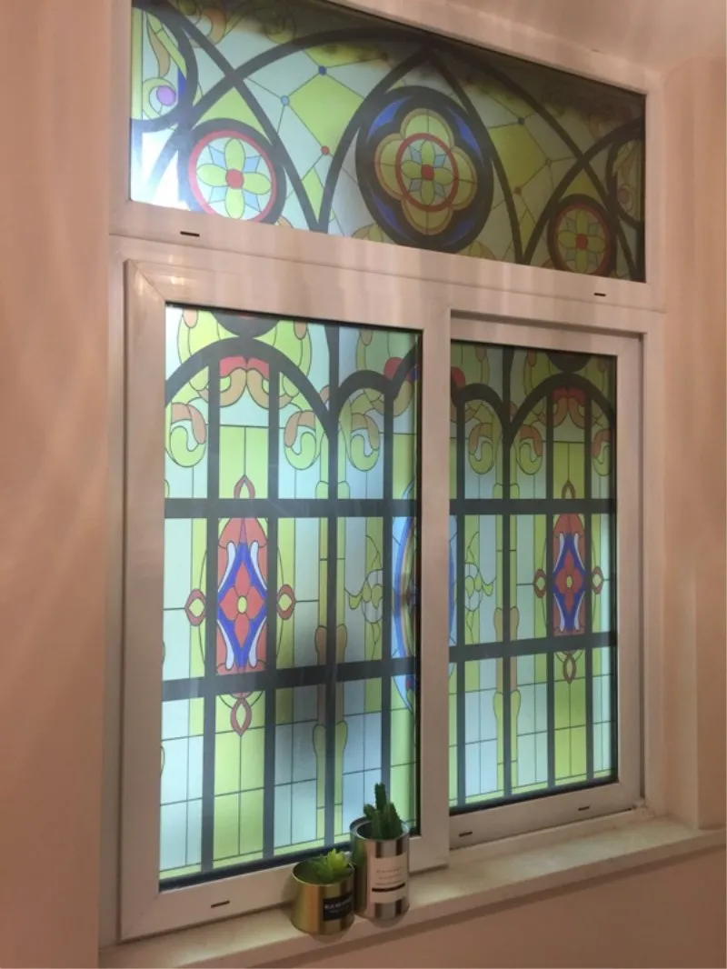 3, статическое прилипание (без клея), прозрачный, легко устанавливается и лучшее качество, задняя поверхность такая же, как передняя поверхность. Фактический цвет продукта тусклый, чем на картинке, он матовый. Общественности не может видеть снаружи, и светильник может пройти все же.