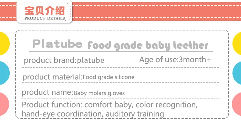 Название продукта: перчатки для прорезывания зубов Упаковка: PE ziplock сумка