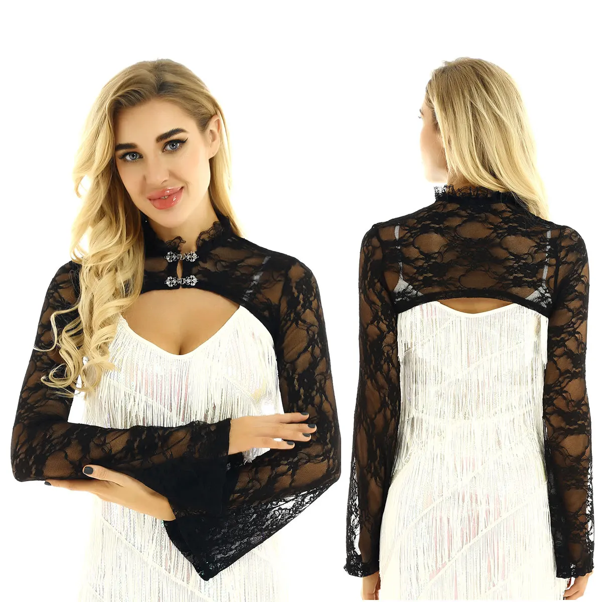 Женский винтажный прозрачный кружевной короткий укороченный топ, однотонный.