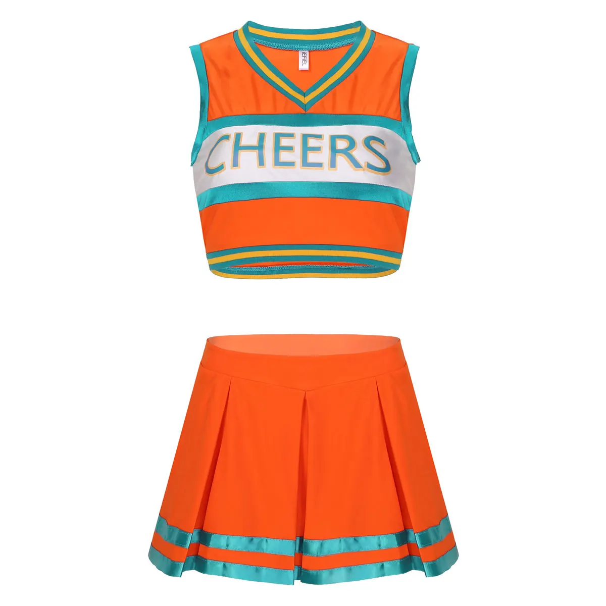 Женский очаровательный карнавальный костюм черлидера, Униформа, хорошая эластичная ткань, мягкая и удобная в носке.