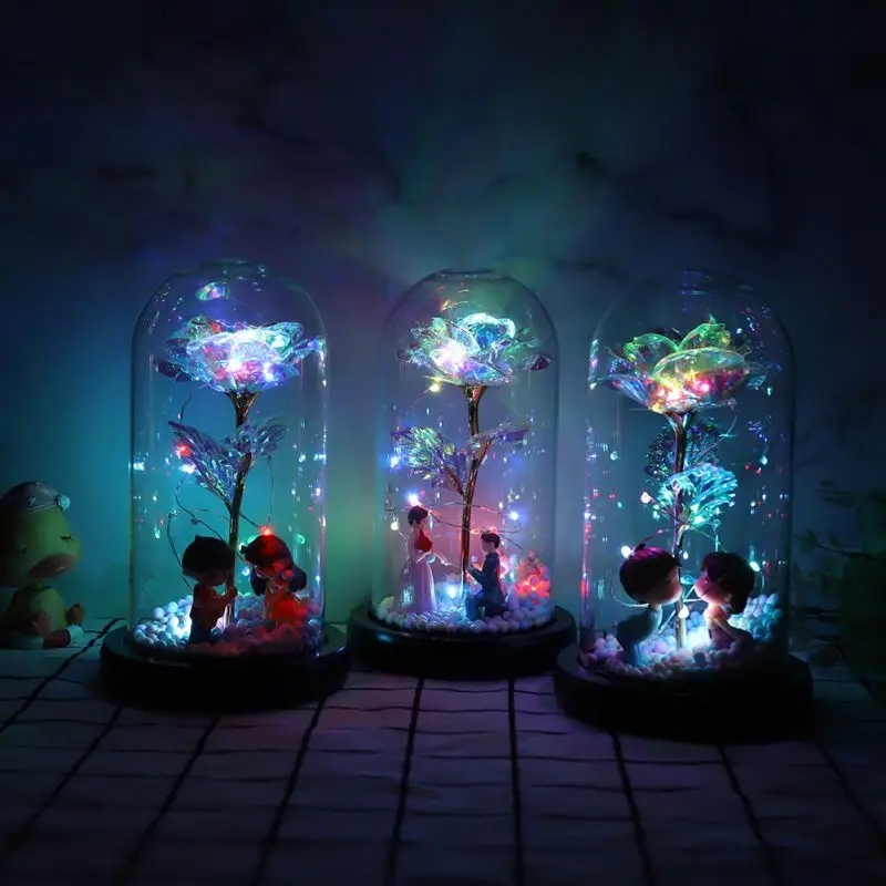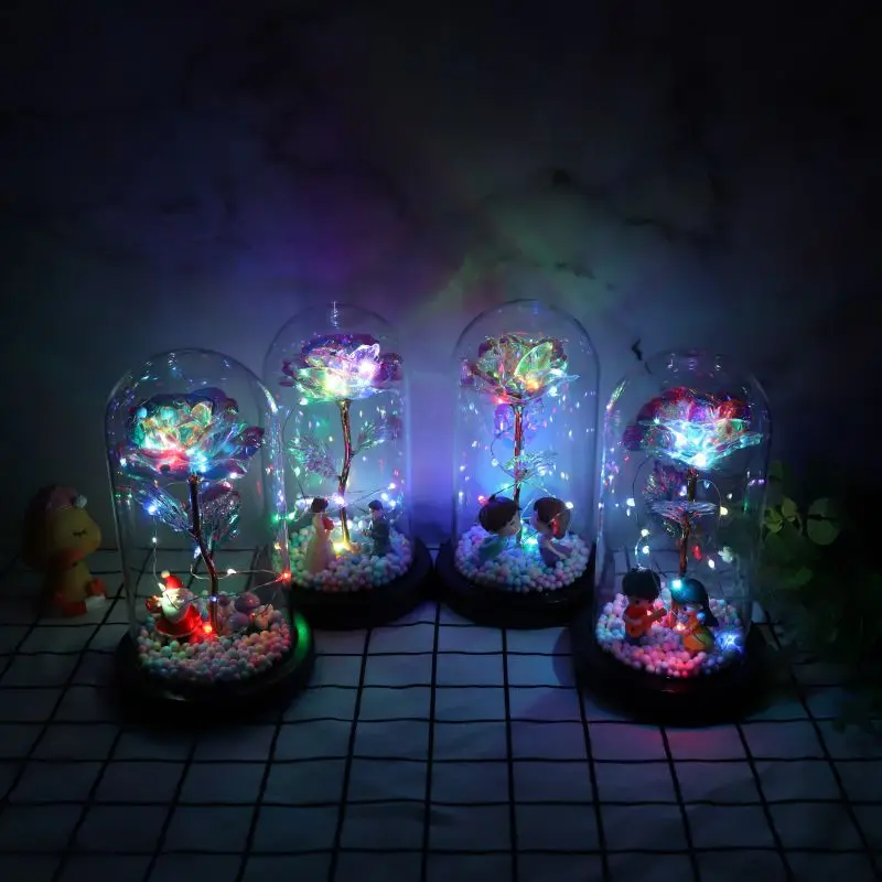 24K Фольга Золотая Роза в стеклянном Куполе С светодиодный светильник на свадьбу, День Святого Валентина, Рождество, Хэллоуин украшения