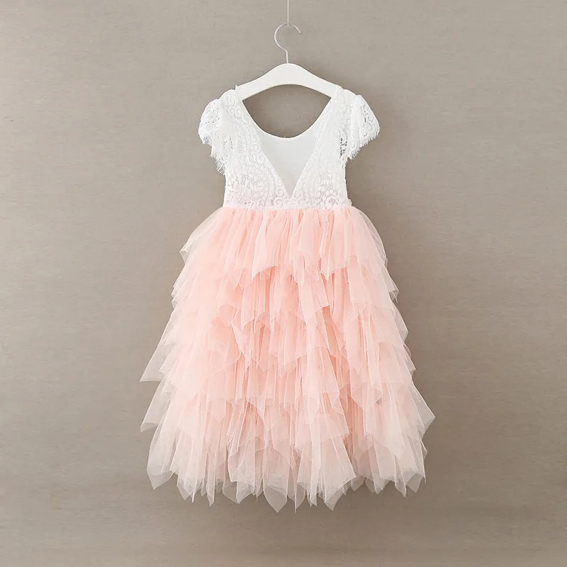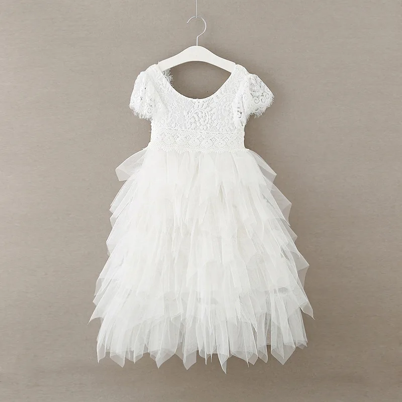 Vestidos/платье для маленьких девочек 2020 г. Кружевное праздничное платье принцессы с открытой спиной для маленьких девочек детское многослойное платье-пачка с открытой спиной белые платья От 1 до 7 лет