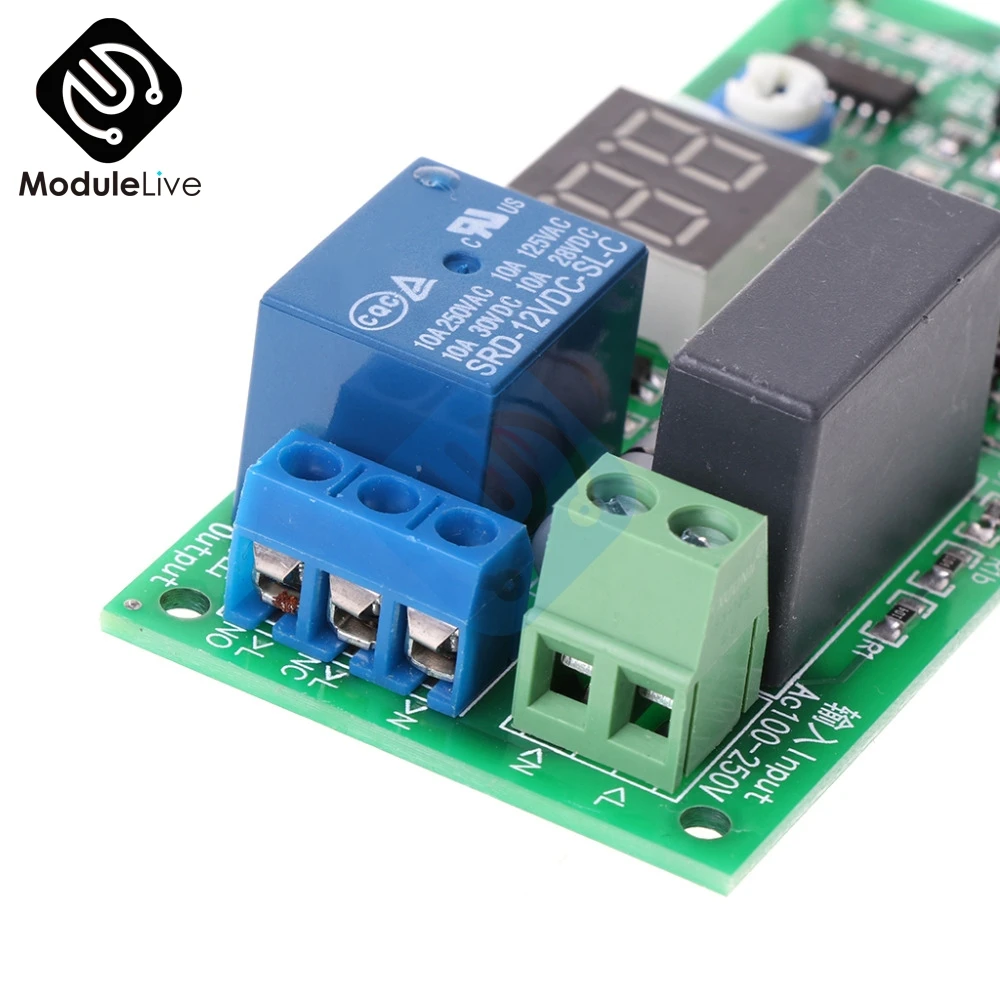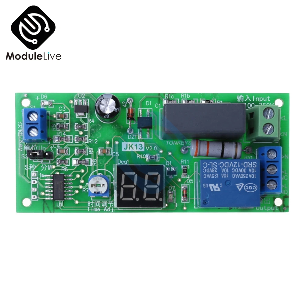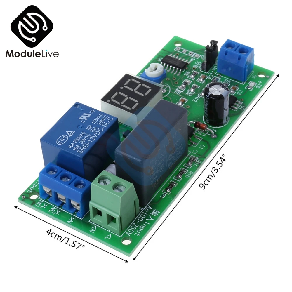 Переменный ток 220 В цифровой дисплей реле задержки таймера плата модуль реле времени переключатель 0-99 секунд/мин Описание: Напряжение: 220 В переменного тока (160-250 В может работать)Потребляемая мощность: 1,0 ВтДиапазон времени: 1-99 секунд или 1-99 минутДисплей режим: 2-значный красный цифровая трубка (оставшееся время является Дисплей ed во время обратного отсчета, в противном случае, установленное время Дисплей ed)Регулировка времени: потенциометр (500 K), динамически отображается на цифровой трубке во время регулировкиТочность: 1 (секунды или минуты, устанавливается в соответствии с перемычками)Ошибка: 2%Режим запуска: коротковат более 0,02 секундВыходной контакт: нормально открытый + нормально закрытыйВыходная мощность: 10 А (диапазон напряжения 0-250 В переменного тока или 0-30 В постоянного тока)Выходной режим: активный выход (контроль только пожарной линии и выключения), нормально открытый + нормально закрытыйРазмеры: 90 мм * 40 мм * 20 мм (длина * ширина * высота), см. Картинку.Вес: 40 г Интерфейс Описание: Вход сигнальной линииВход нулевой линии> N нулевой линейный выход (фактически подключен непосредственно к выходу)> LNO выход Firewire (нормально открытый, динамический выход)> LNC выход FireWire (нормально закрытый, отключенный выход, как правило, не подключен)Примечание: «Вкл» в описании функции означает, что реле соединено между «общим» и «нормально открытым», то есть выходом подвижного контакта. Посылка включает в себя: (1 шт.);AC 220 V цифровой дисплей реле задержки таймера модуль платы