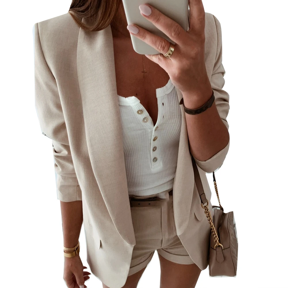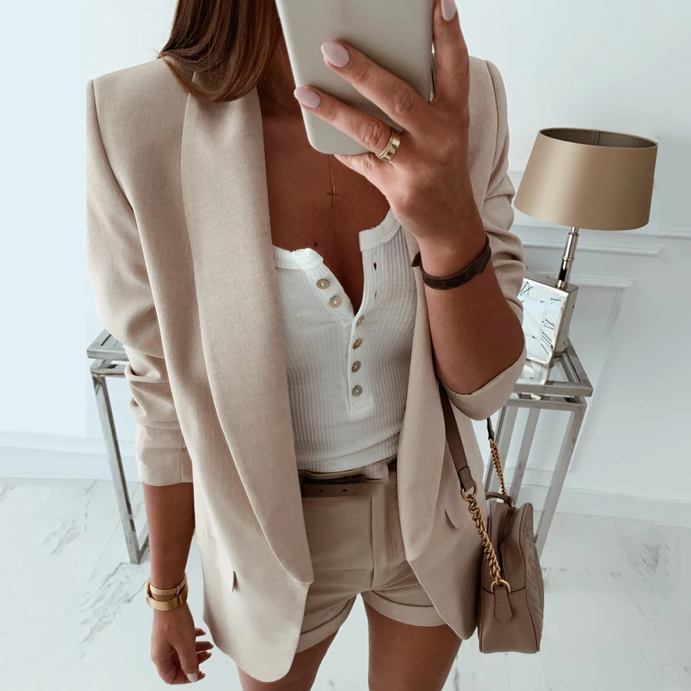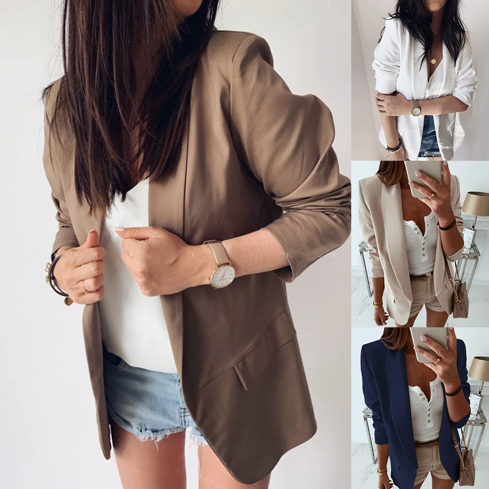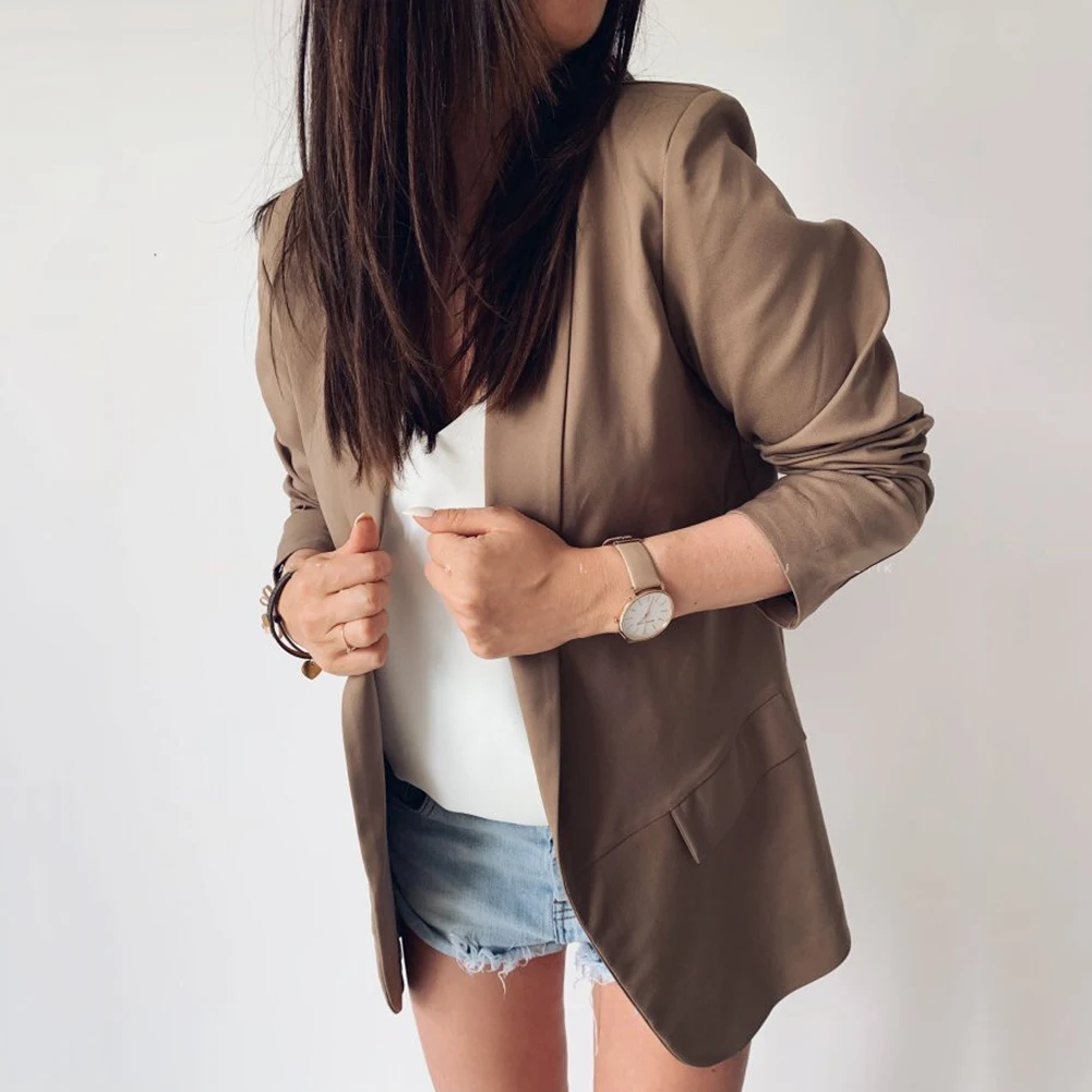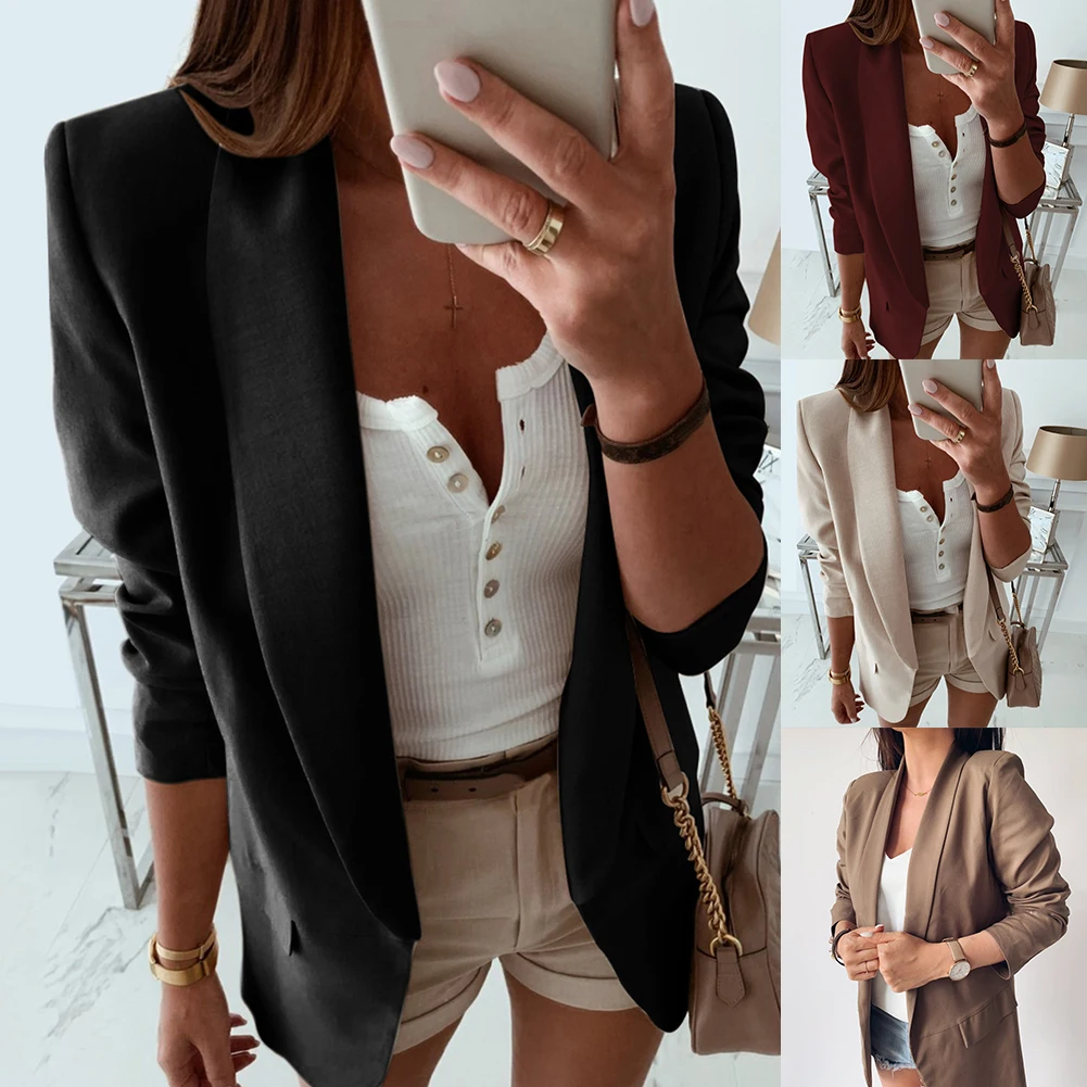 Повседневный блейзер Feminino, Женский базовый блейзер с зубчатым воротником, однотонный блейзер с карманами, шикарные топы, офисный женский ретро пиджак на одной пуговице