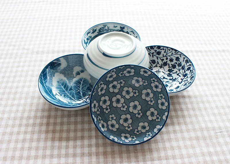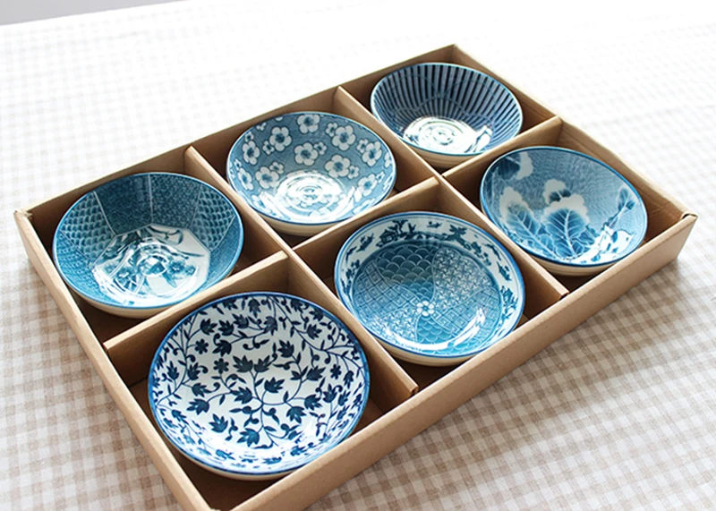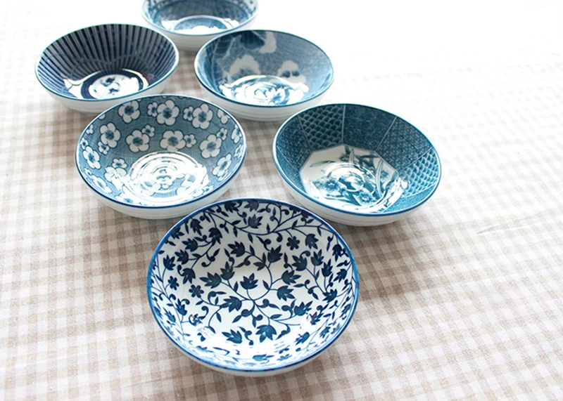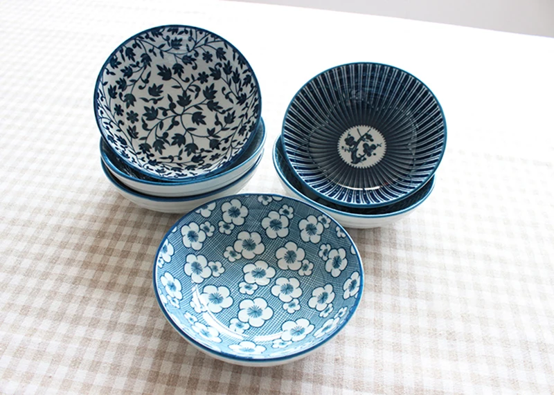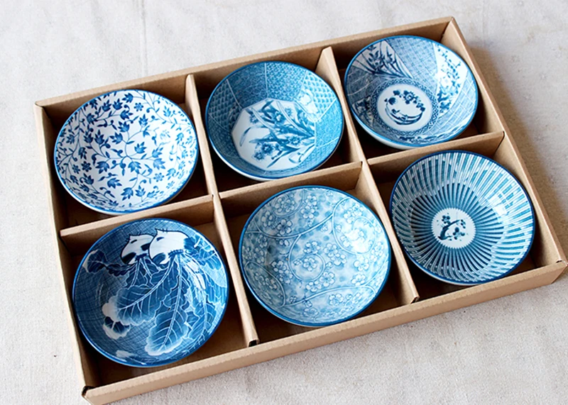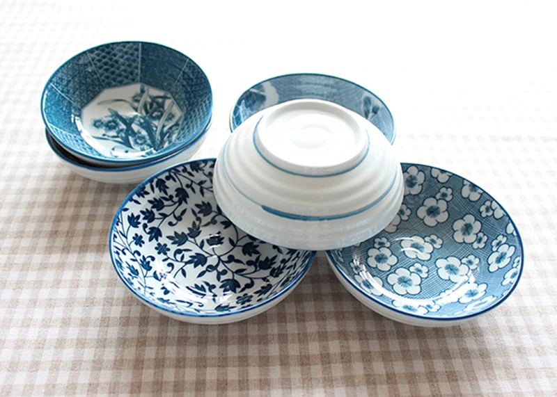 Набор керамической посуды Цзиндэчжэнь 4-6, сине-белый фарфоровый подглазурь, цветная миска, тарелка для закуски, миска для салата, миска для фруктов