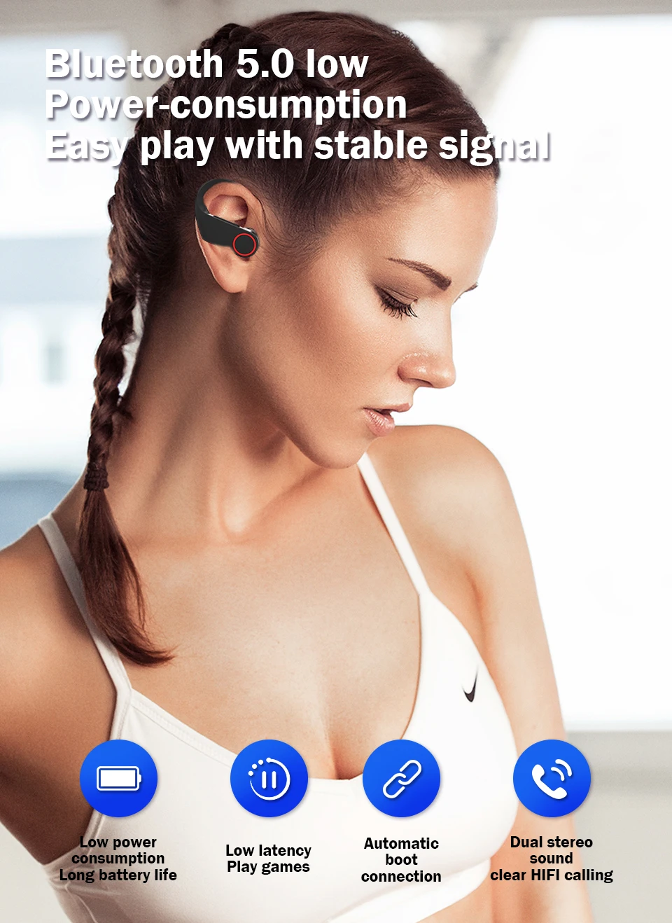 Версия Bluetooth: V5.0 Диапазон Bluetooth: 10 м/33 фута (свободное пространство) Профиль Bluetooth: HSP/HFP/A2DP/AVRCP Частотная характеристика: 20-20 кГц Мощность передачи: ≤ 4 дБм Блоки драйвера: катушка из настоящей меди 11 мм Сопротивление драйвера: 32 Ом T.H.D: <3% @ 1 мВт Батарея Ёмкость: встроенный аккумулятор 60 мАч перезаряжаемый полимерный аккумулятор Батарея * 2 Зарядка Напряжение: DC4.7V-5V/0.5A-1A Время полной зарядки: 1-2 ч Время работы музыки: около 8 ч Время вызова: около 8 часов Время в режиме ожидания: 150 ч Один наушник чистая Вес: 9,5g/0,34 oz