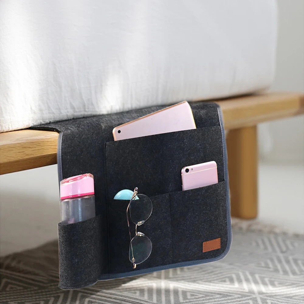Просто вставьте прикроватный мешок для хранения между матрасом и прикроватной тумбочкой, диваном, столом и т. д., не требуется сборка, прост в использовании.