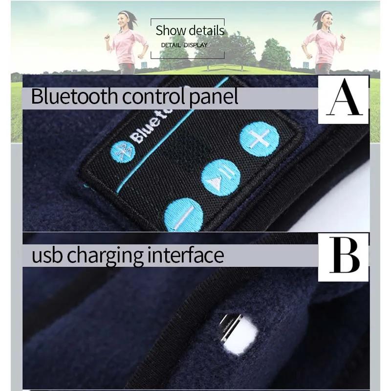 Bluetooth оголовье Йога Фитнес Спорт на открытом воздухе бег Гарнитура вызов музыка фланель синий тюрбан