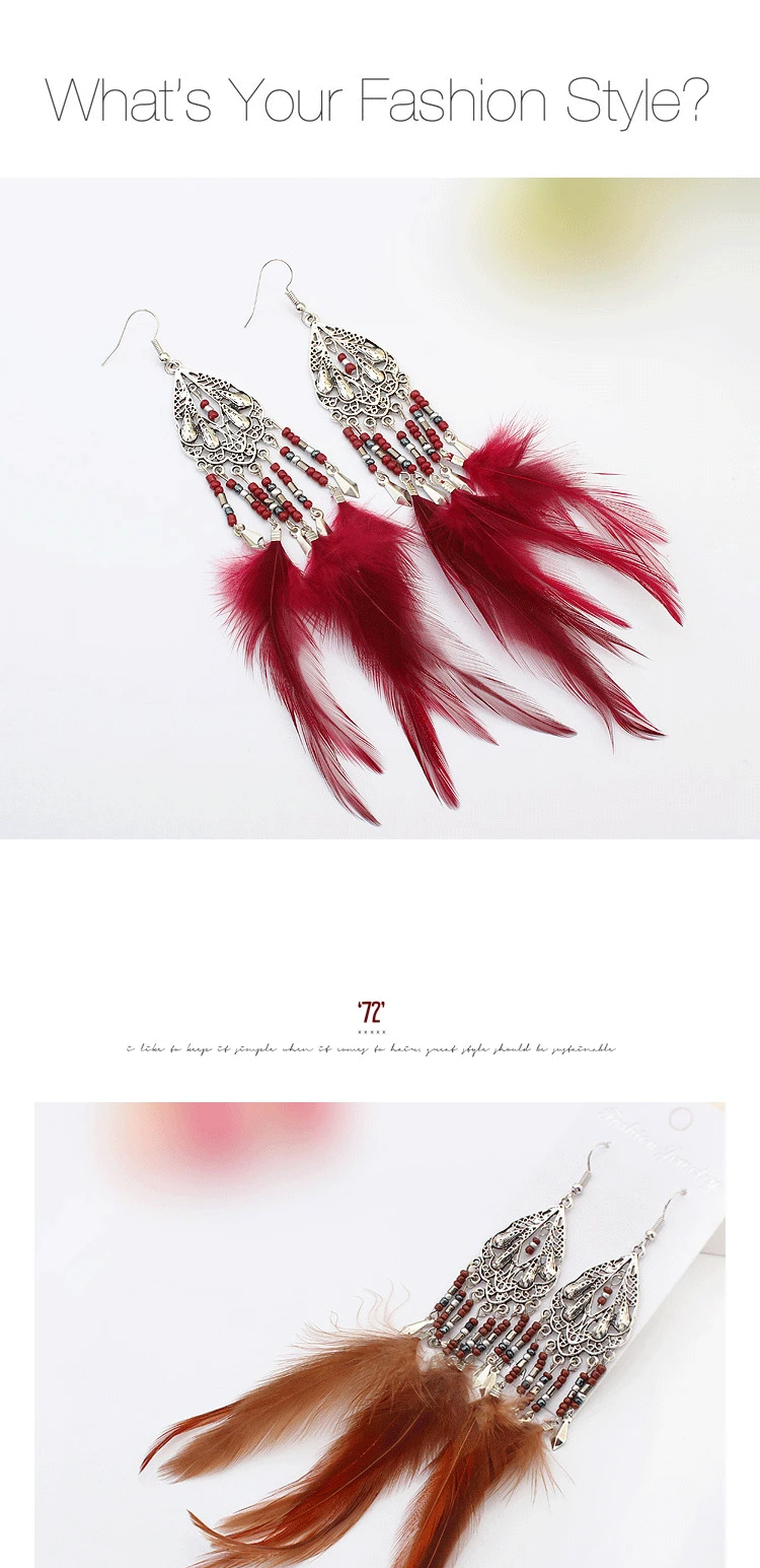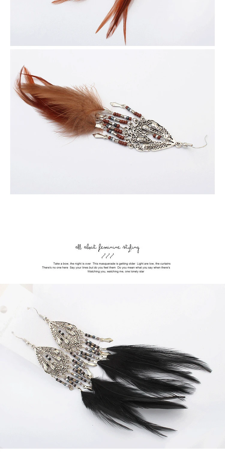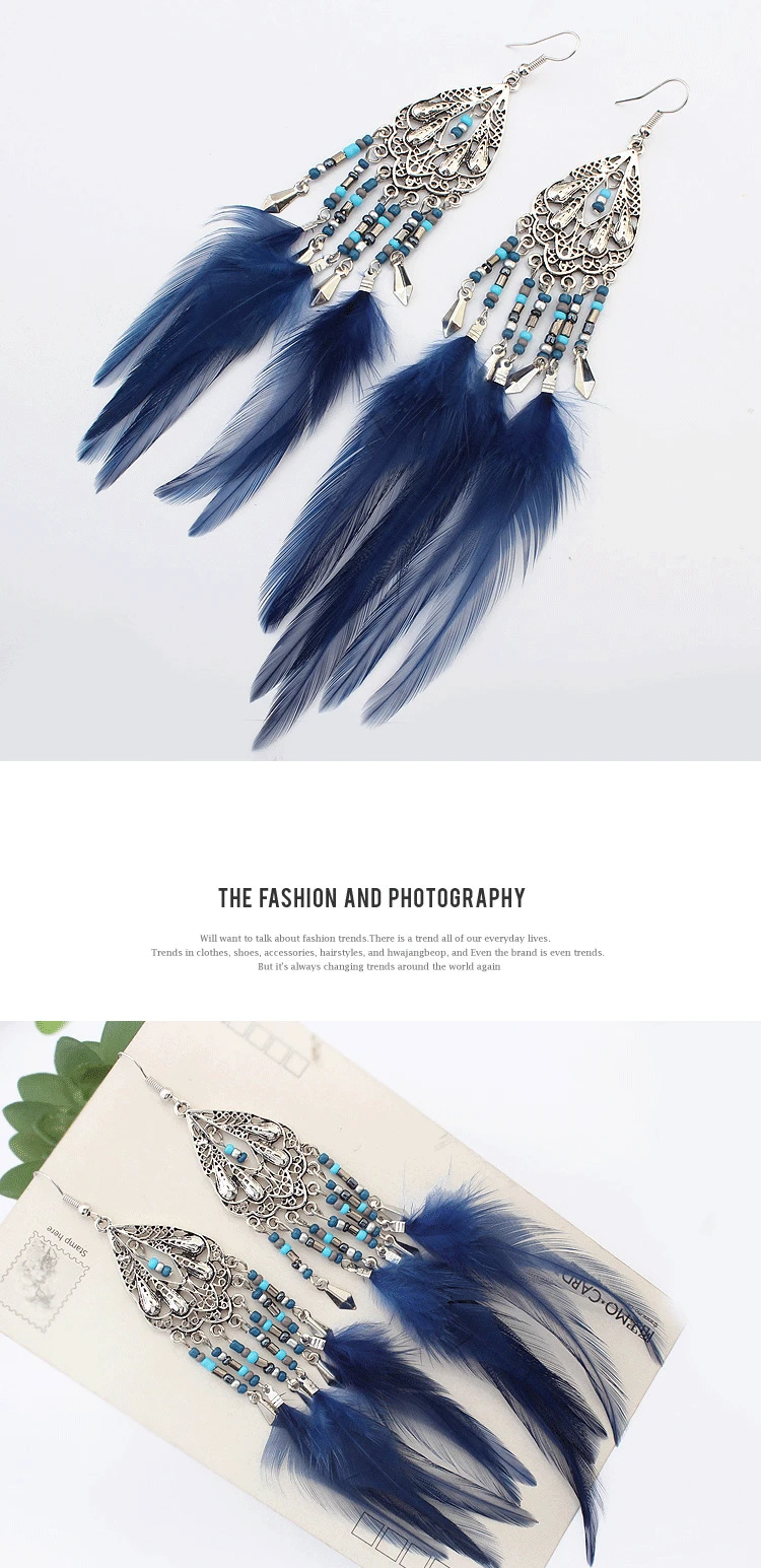 Модные Ретро преувеличенные богемные капли воды бусины в виде риса перо кисточкой Национальный стиль серьги
