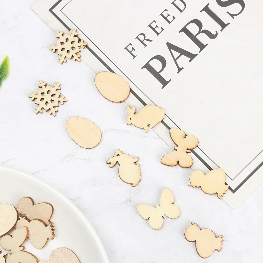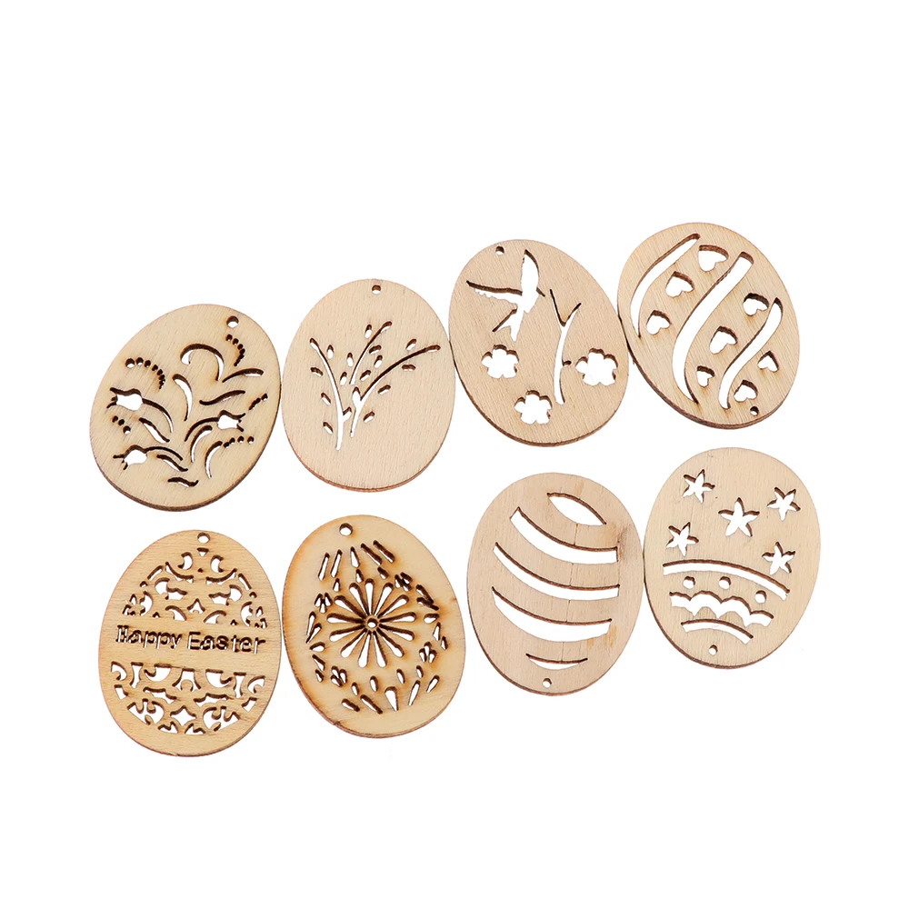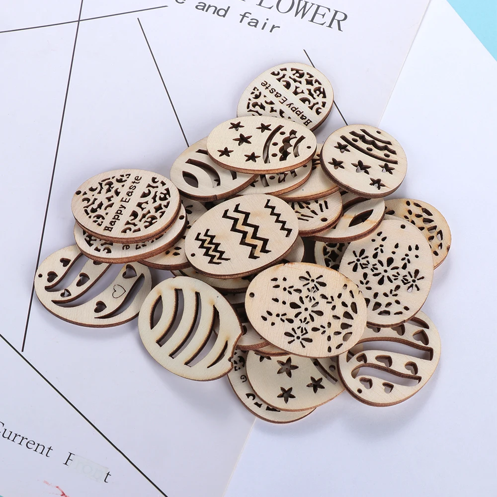 50 шт. лазерная резка деревянные счастливые 2020 пасхальные яйца кролика деревянные Ремесла декор вечерние DIY рукоделие деревянные чипы натуральные висячие украшения