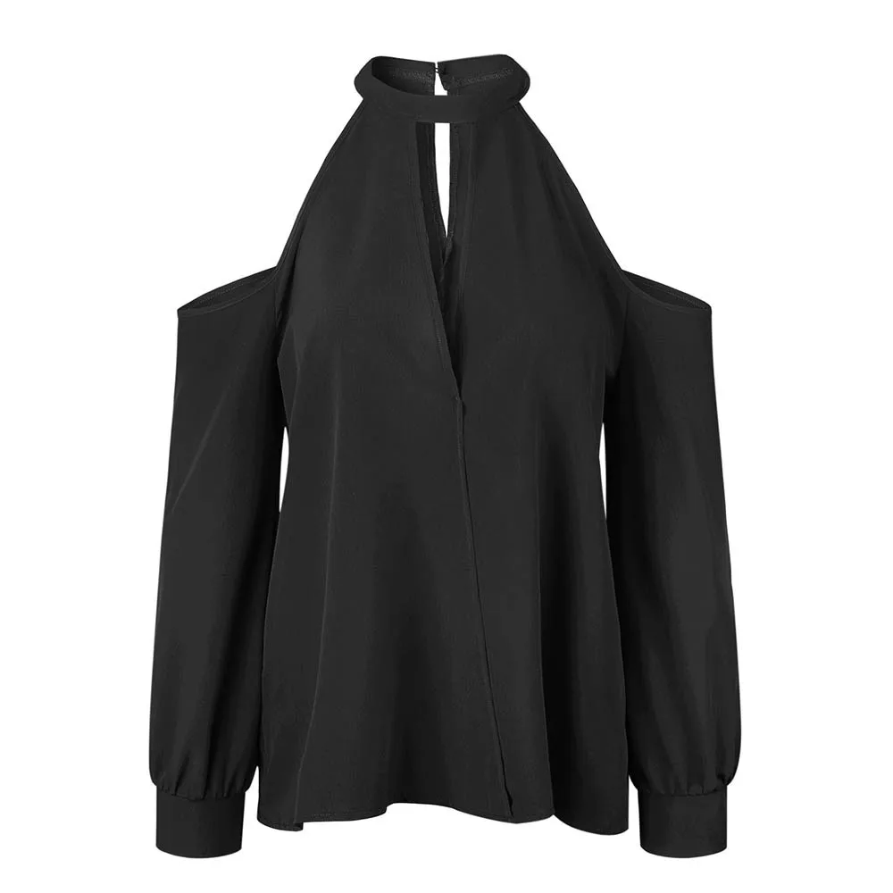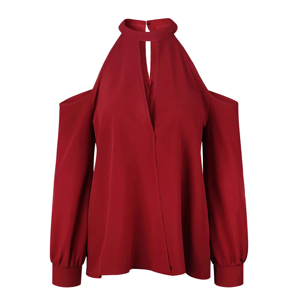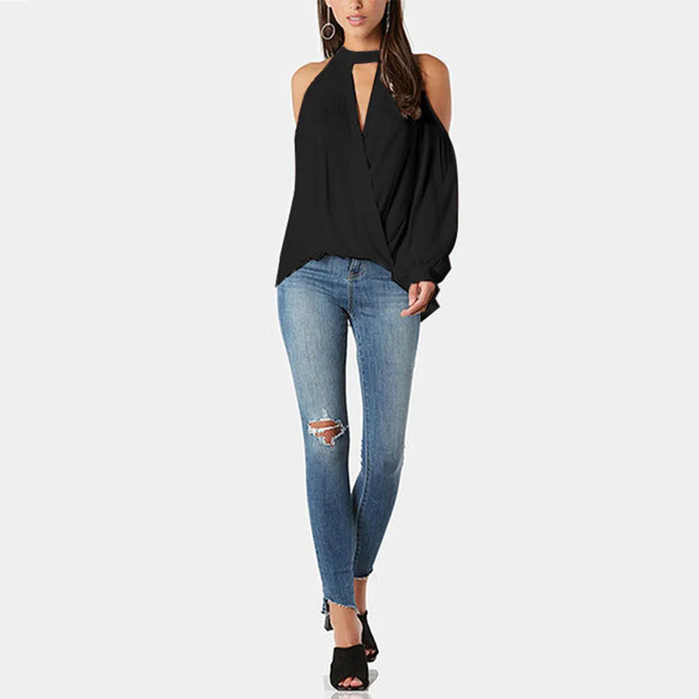 Женская Сексуальная Блузка с v-образным вырезом и открытыми плечами и длинным рукавом