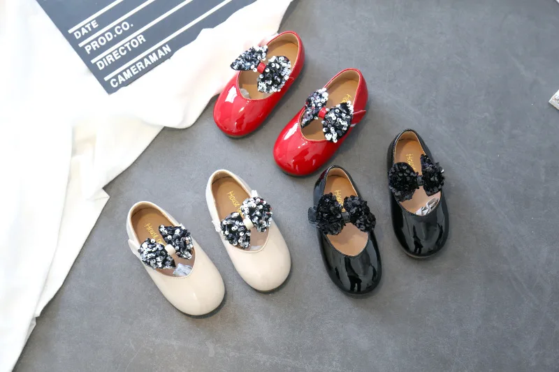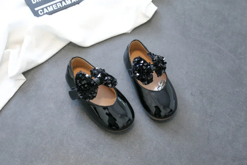 Весенняя обувь принцессы с бантом для малышей; модельные туфли из искусственной кожи с блестками для маленьких девочек; Милые брендовые модные блестящие туфли Mary Jane на плоской подошве