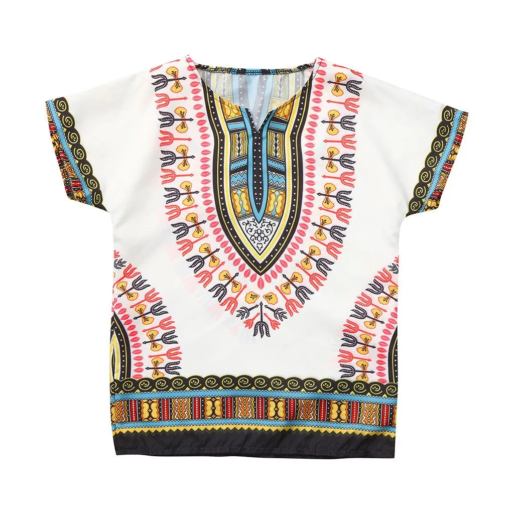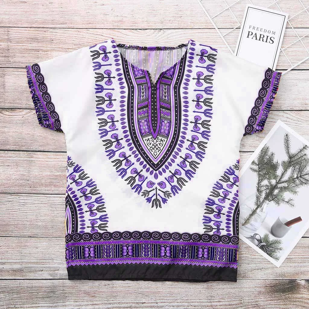 Яркая детская футболка в африканском стиле для мальчиков и девочек; Футболка в стиле Дашики; Топы