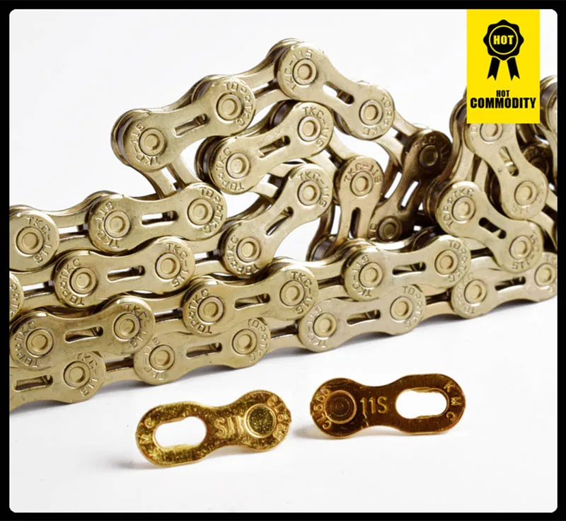 Новая цепь для скоростного велосипеда 9, 10, 11, радужная Золотая половинчатая велосипедная цепь, MTB дорожные велосипедные цепи, совместимые с Shimano SRAM Campagnolo (Отправить красивый велосипедный Звонок)