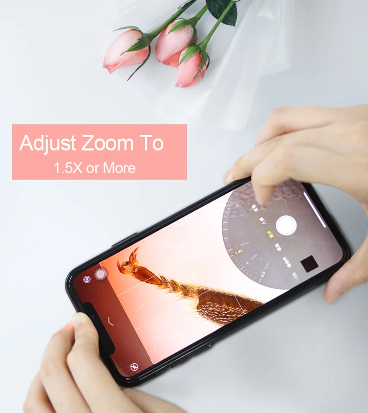 Примечание: При съемке объектива телефона с микроскопом 400X, пожалуйста, настройте камеру на 1,5x или более.