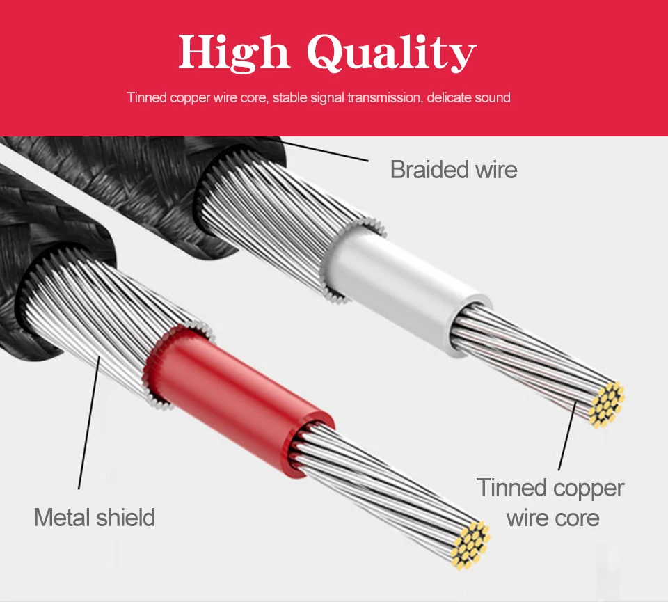 Характеристики: Позолоченное соединение 24K, плотно соединенное с оборудованием, широкая совместимость, подходит для различных источников аудиовыхода, медного сердечника, стабильности передачи, прочного провода.