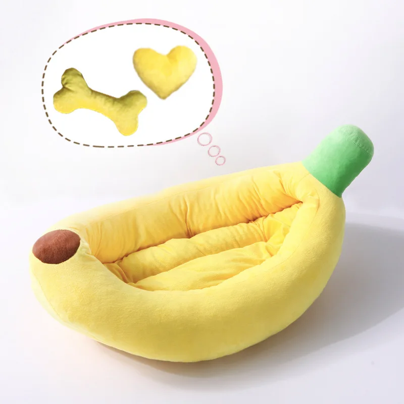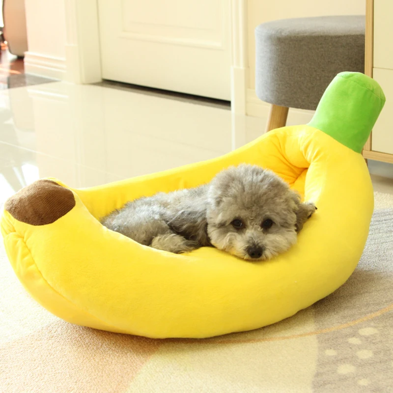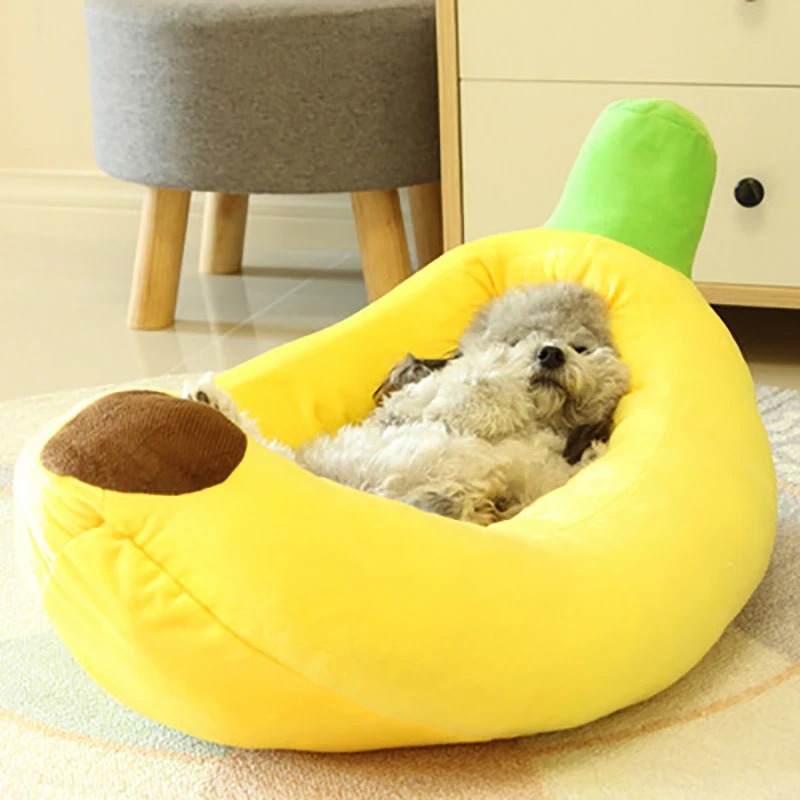 Моющаяся кровать для щенков с бананом, мягкая теплая кровать для кошек и собак, зимняя теплая уютная кровать с бесплатными игрушками