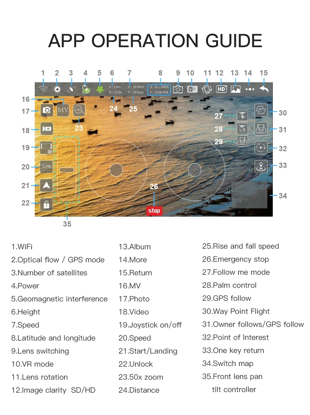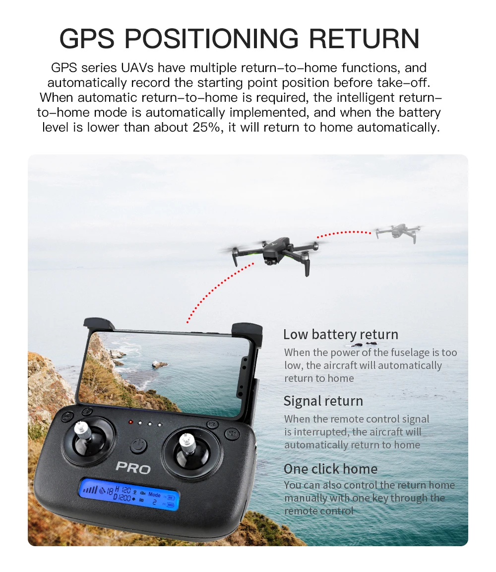 Первые 9 вариантов - это версия SG906, средние 12 - версия sg906 pro. последние 5 вариантов - версия sg906 pro 2, пожалуйста, проверьте ее перед заказом, спасибо! SG906 PRO / SG906 PRO 2: Основная информация: Название продукта: GPS безщеточный квадрокоптер Drone Код продукта: Beast SG906-PRO / SG906 PRO 2 Цвет продукта: черный Размер изделия: 28,3x25,3x7 см (до складывания) 17,4x8,4x7 см (в сложенном виде) Система позиционирования: двухрежимное позиционирование GPS / ГЛОНАСС Модель бесщеточного двигателя: 1806 SG906 PRO: 2-осевой стабилизирующий стабилизатор / SG906 PRO 2: 3-осевой стабилизаторный стабилизатор Информация о полете: Срок службы: SG906 PRO: 7,4 В, 2800 мАч, батарея около 25 минут / SG906 PRO 2: 7,6 В, 3400 мАч, около 26 минут Время зарядки: около 6 часов Расстояние дистанционного управления: около 1200 м Расстояние передачи: около 600-800 м Высота пульта дистанционного управления: около 120 м Съемка с распознаванием жестов: 1-3 м Параметры аэрофотоснимка: Частота Wi-Fi: 5 г Разрешение камеры: 4096 * 3072 (приложение) 4096 * 3072 (ТФ) Разрешение видео: 2048 * 1080 (приложение) 2048 * 1080 (TF) Память камеры: до 32 ГБ Частота кадров передачи: 25 кадров в секунду Угол обзора камеры ESC: 110 Ì » 1. GPS одна клавиша возврата к точке взлета, возврат малой мощности, возврат сигнала отсутствует. 2. Интеллектуальное отслеживание по GPS: после того, как дрон подключится к GPS, включите функцию отслеживания в приложении, и дрон следует за мобильным телефоном. Изображение следующее: на расстоянии 1-5 м от самолета, чтобы идентифицировать объект и выполнить автоматический следующий полет. 3. Распознавание жестов при съемке: в пределах 1–5 м от самолета сделайте фото-жест / жест камеры перед камерой. 4. Маршрут многоточечного планирования полета: самолет летит независимо по заданному маршруту, а игроки сосредоточены на стрельбе. 5. Орбита с фиксированной точкой: найдите центральную точку орбиты, а затем переместите нужный радиус орбиты с помощью рычага. 6. Функция поиска самолета: щелкните значок сигнала GPS три раза подряд, откройте интерфейс карты, и на карте отобразится последнее расстояние, долгота и широта положения самолета. 7. Функция MV: фильтр, видеоэффект, фоновая музыка, обмен изображениями / видео SG906 : Особенности: 1.GPS возвращается к начальной точке и точке с низким энергопотреблением и без сигнала. 2. умное отслеживание GPS: после того, как самолет покинул GPS, он откроет следующую функцию приложения, и самолет будет следовать за мобильным телефоном. Кроме того, Image Follow: обнаружение объекта съемки и автоматическое отслеживание полета. 3. Фотосъемка и распознавание жестов: в пределах 1-3 м от плоскости сделайте фотографический жест / фотографический жест перед камерой. 4. Маршрутное многоточечное планирование полета: самолет самостоятельно летит по заданному маршруту, игрок фокусируется на стрельбе. 5. Окружение с фиксированной точкой: Найдите центр окружения, а затем переместите желаемый радиус окружения через качельку. 6. Отслеживание и напоминание о дроне: трижды щелкните значок сигнала GPS, откройте интерфейс карты, карта показывает расстояние до самолета, длину и широту. 7. Обмен фотографиями и видео: фотографиями можно публиковать индивидуально или выборочно, а видео можно публиковать только по одному. Описание: Функция: складной, запуск одной кнопкой, приземление одной кнопкой, высота удержания, постоянная оптического потока, двойная камера, подключение к Wi-Fi, управл
