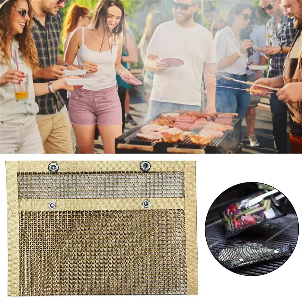 2. Никакого беспорядка: никогда не жарьте на противной решетке! Этот мешок для гриля защищает все ваши творения на гриле от падения через решетки! Антипригарная, легко моется, многоразовая, ручная стирка и безопасность в посудомоечной машине! Идеально подходит для газового, электрического и угольного гриля.
