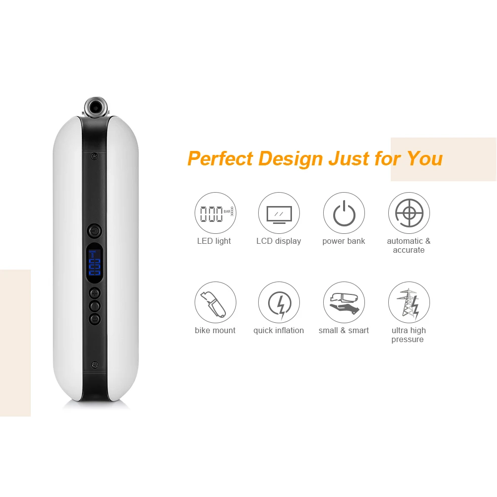1. Мощное Выходное давление. 2. Поставляется с мощным литий-ионным аккумулятором, который может использоваться в качестве банка питания для устройств Android и IOS. 3. Со встроенным светодиодный светильник, который обеспечивает до 7 ч прочный светильник и 80 люмен, вы будете иметь правильную видимость в любом состоянии