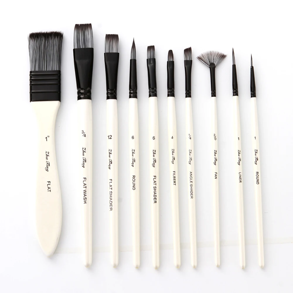 10 шт круглых кистей для рисования различных размеров и формы, включая веерообразную ручку, могут удовлетворить ваши различные потребности в живописи.