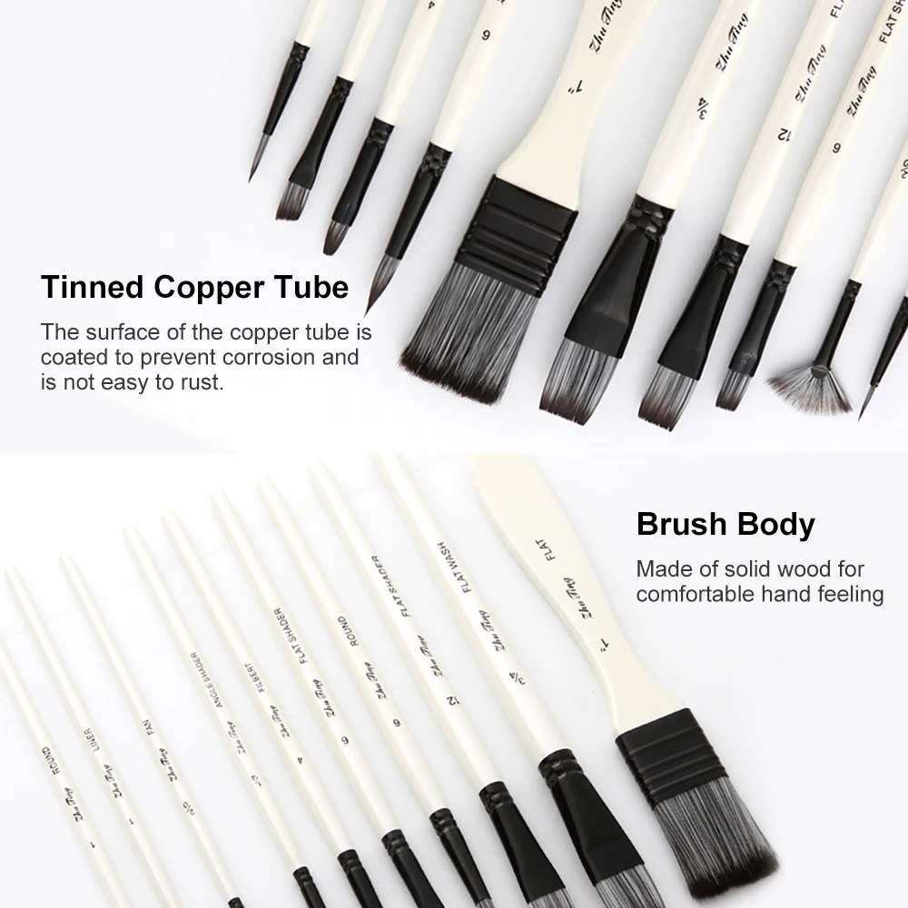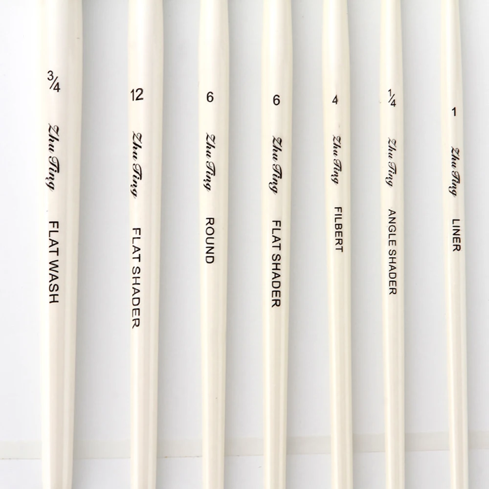 Размеры кисти: #1 круглый, #1 вкладыш, #6 Круглый, #1/4 угол затенения, #4 филберт, #1 "плоский, #3/4 плоская стирка, #12 плоский затенитель, #6 плоский шейдер, #2/0 вентилятор. (1 шт каждого размера)