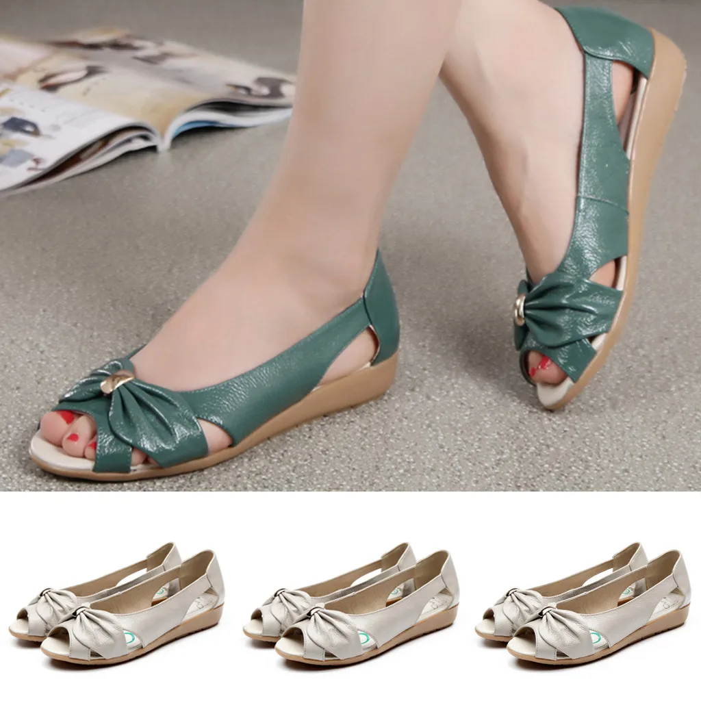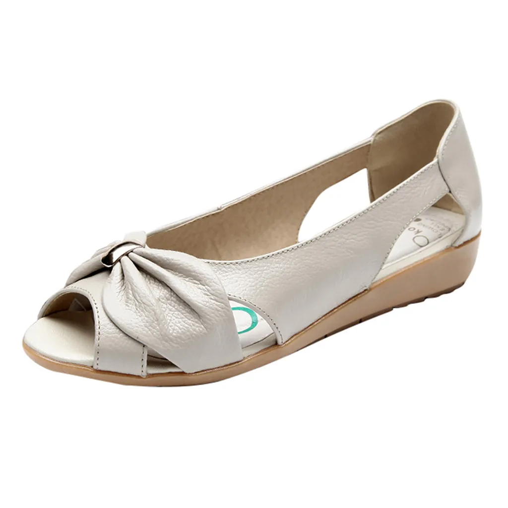 Летние однотонные сандалии на плоской мягкой подошве с бантом и открытым носком; женская повседневная обувь
