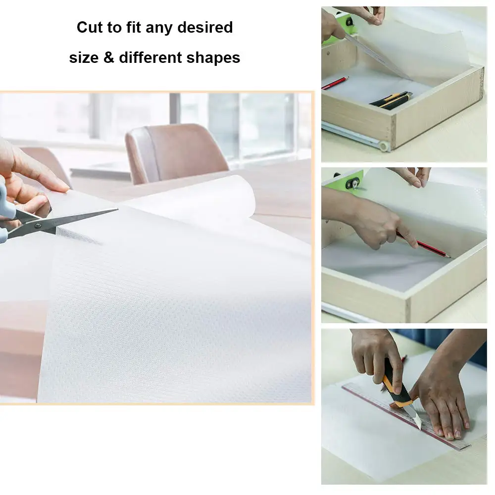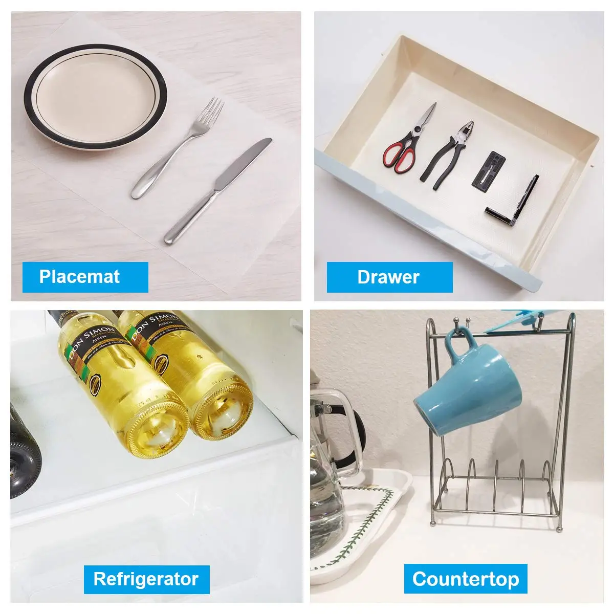 2. Основные особенности-прозрачные виниловые вкладыши с ухабистой сверху и гладкой стороной вниз, противоскользящие, Нескользящие, не порвут, как бумажный вкладыш, водонепроницаемый, анти-масло и устойчив к пятнам. Защитите свои ящики от царапин и сохраните их в новом состоянии.
