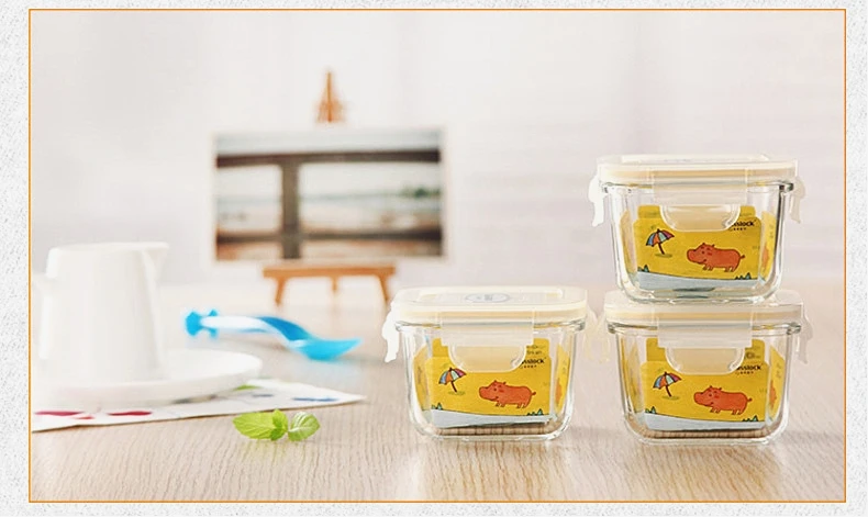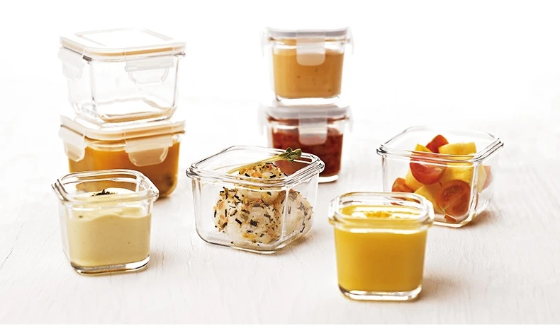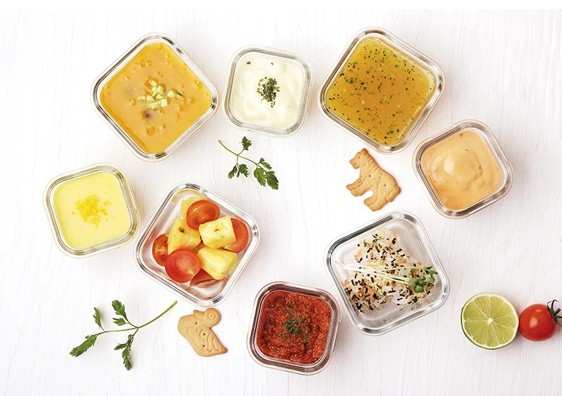 Этот контейнер для детского питания произведен в Южной Корее, все сделано из высококачественного стекла, термостойкие до 120 градусов Цельсия, морозостойкие до 20 градусов Цельсия, микроволновая печь доступна. Емкость очень мала, подходит для детского питания или небольших десертов. Внутри крышки есть силиконовые кольца для предотвращения утечки. Кроме того, закаленное стекло относительно жесткое, поэтому оно устойчиво к падениям.