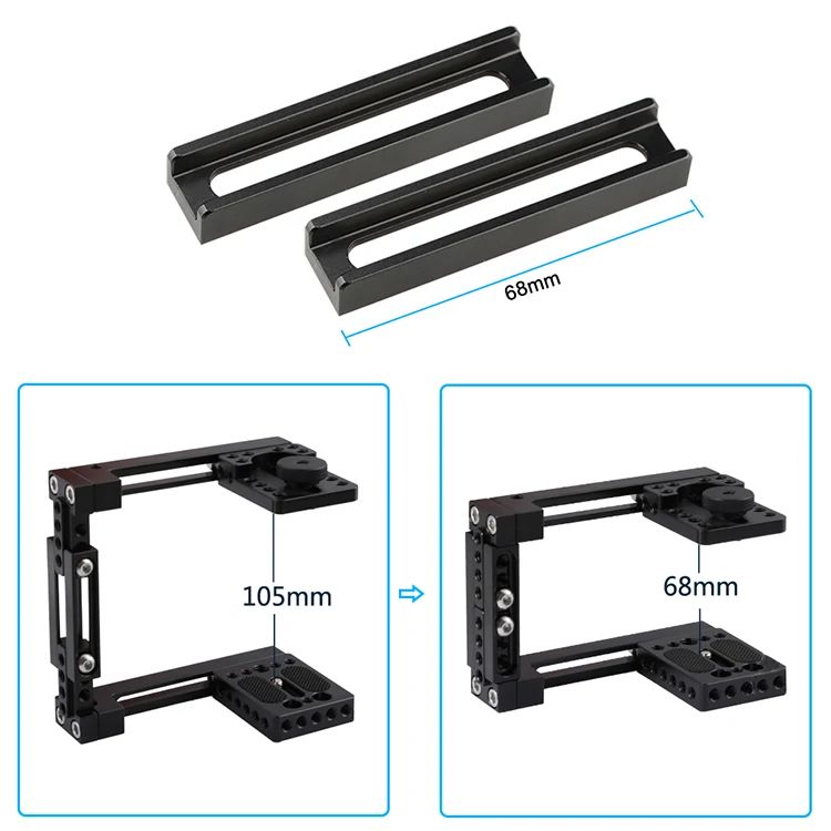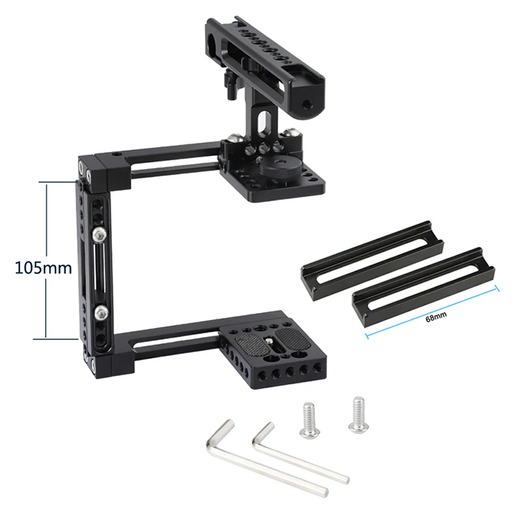 Основные характеристики продукта • позволяет построить c-рамку слева или справа • Выдвижная боковая Опора поставляется с 2 видами раздвижных стержней (подходит для высоты камеры: от 68 мм до 105 мм до 145 мм) • Регулируемая рукоятка для сыра с креплениями для обуви • Встроенный перила диаметром 15 мм в верхней рукоятке • Доступно множество отверстий с резьбой 1/4 "-20 и 3/8"-16 • Специальное крепление рукоятки для регулировки зазора • Супер Прочные и Удобный • описание конструкции из алюминиевого сплава обновленная версия с 8 февраля 2018 года • клетка совместима с 60D,70D,80D,5D Mark II,5D Mark III,5D Mark IV, 5DS,5DSR, 50D,40D,30D,6D,7D,7D650D,600D,550D,500D,450D,760D,750D,700D,100D,1200D; Nikon D3200,D3300,D5200, 700D d5500, D7000,D7100,D7200,D300S,D610,DF; a58,A99,a7,a7II; GH5/GH4/GH3/GH2 и т. Д. • Боковая Опора поставляется с двумя различными видами раздвижных стержней, одна-68 мм, другая-105 мм. Вы можете ослабить винты с шестигранным ключом, проскользнуть по канавкам, чтобы отрегулировать высоту и зазор, чтобы соответствовать Ваша камера. Кроме того, перевернув клетку (c-рамка), обменяя положение верхней пластины и опорной пластины, она может поворачиваться на правую сторону. • Он оснащен съемным сиденьем ручки, который позволяет перемещать или поворачивать рукоятку при установке, и вручную заблокировать ее вручную с помощью винта. Через нижние двойные крепежные точки 1/4 "вы можете получить эту рукоятку, привинченную к верхней части установки клетки, точки крепления измеряют расстояние между 31 ~ 41 мм. • Оснащенная верхняя ручка имеет несколько возможностей крепления, включая зажим для стержня 15 мм, крепление для обуви и резьбовые отверстия 1/4 "-20 и 3/8"-16, благодаря чему вы можете прикрепить стержень или некоторые другие аксессуары для обуви для создания различных конфигураций DIY. Вес нетто: 532,2 г посылка включает в себя: 1 Удлиняющая половинчатая клетка 1 x настраиваемая ручка для сыра с креплением для обуви и 15 мм перила 2x68 мм раздвижная планка 2x105 мм раздвижная планка