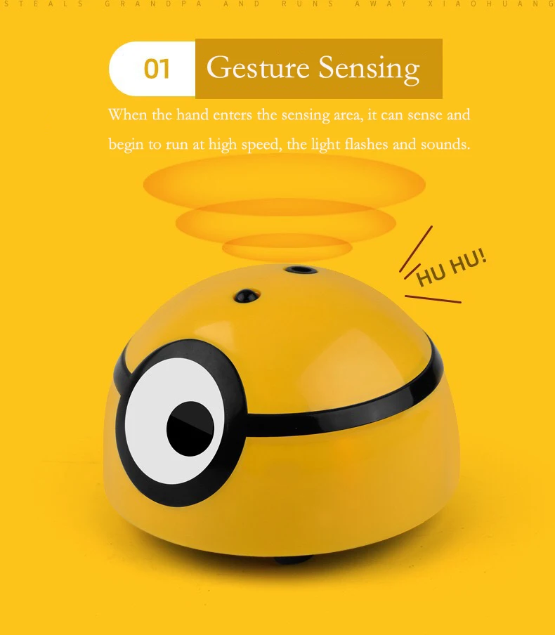 Особенности: Изготовлен из более прочного пластика. Инфракрасное зондирование и высокоскоростной бег, когда рука входит в сенсорную область, маленькие восприятия снов и начинает сбегать, когда светильник мигает и издает звуки. Встроенное высокоскоростное универсальное колесо, будет случайным образом поворачиваться или отклоняться, когда вы быстро ударите по препятствию. Когда вы нажимаете на эту милую игрушку, светильник мигает, и звук будет звучать, продукт будет мигать быстро и издавать звук. Когда Индукционная Игрушка входит в режим сна, просто нажмите на нее, чтобы перезапустить режим ожидания. Технические характеристики: Материал: пластик Цвет: желтый Размер: около 7,5x5 см Питание: 3 батарейки AAA (не входят в комплект) Типы: с контролем, без управления Посылка включает в себя: 1 шт. x Индукционная Игрушка Примечание: 1. В связи с использованием разных по светильник экране монитора фактический цвет товар точно такой же, как и цвет изделия на фото может быть s светильник ly отличается из-за характеристик монитора компьютера. 2. Замеры сделаны вручную, поэтому возможны 0,5-2 см, связанная с особенностями измерения вручную.