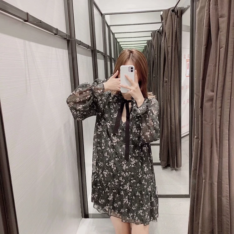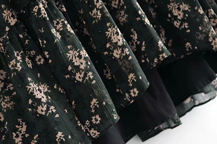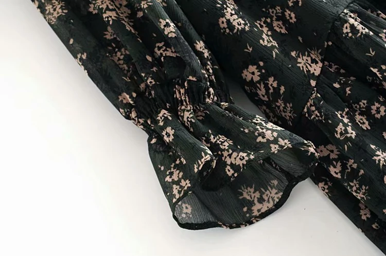 LUZUZI женское платье с рюшами и бабочкой, цветочный принт, винтажное платье с длинным рукавом, повседневное Плиссированное женское платье, шифоновые платья с оборками