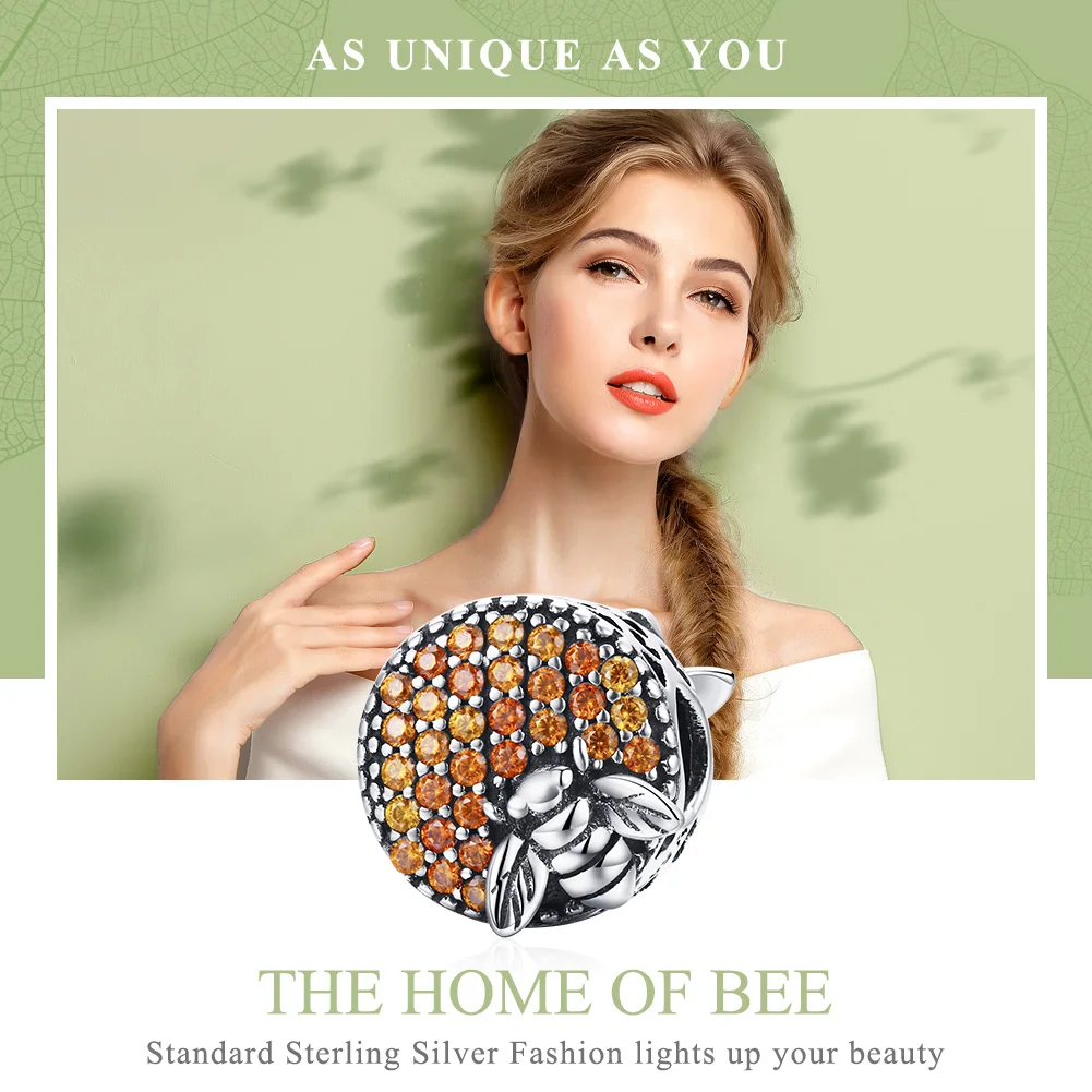 Горячая Распродажа 100% 925 пробы Серебряный пчелиный сотообразный домашний Хрустальный CZ Шарм бисер Подходит для браслета DIY Изготовление ювелирных изделий SCC654