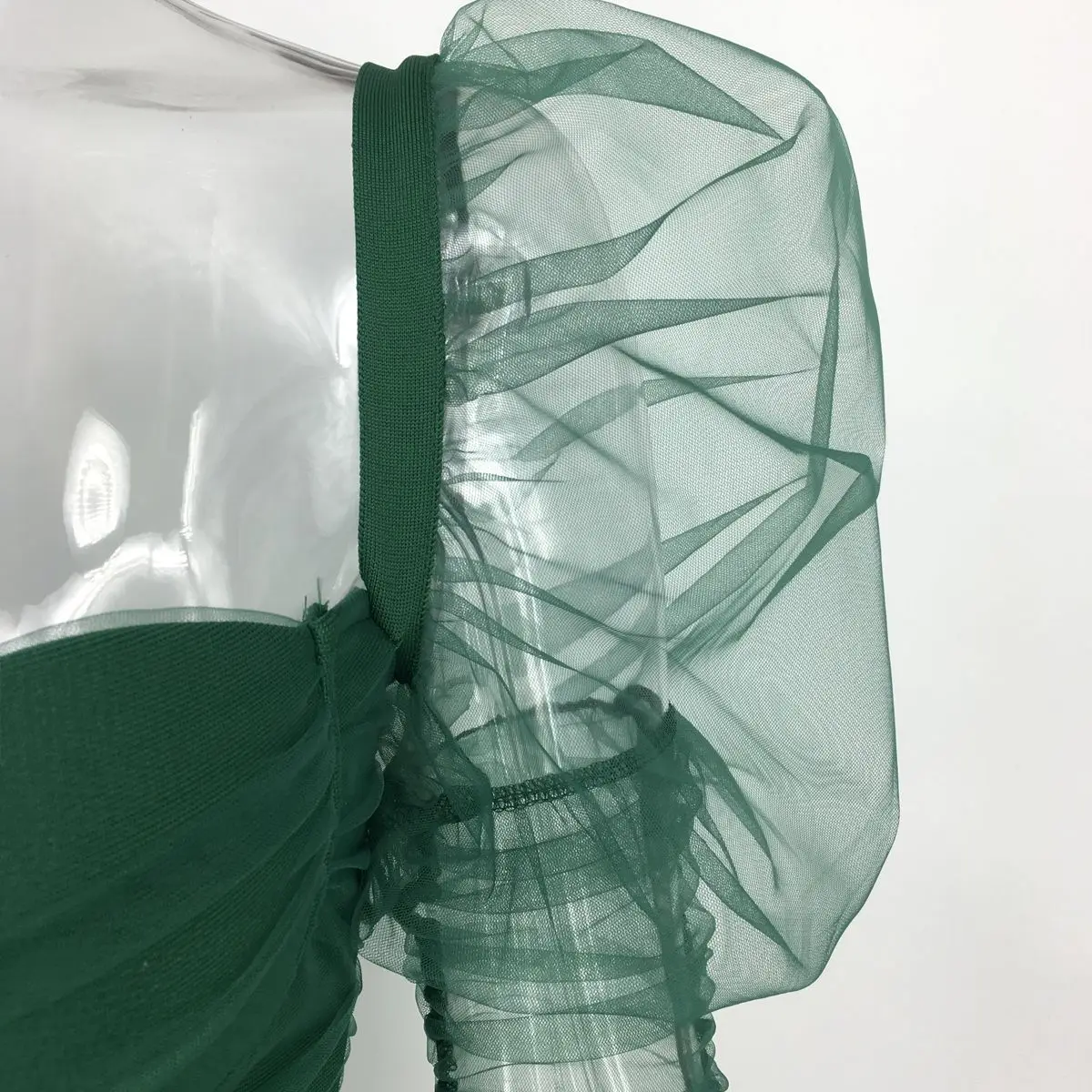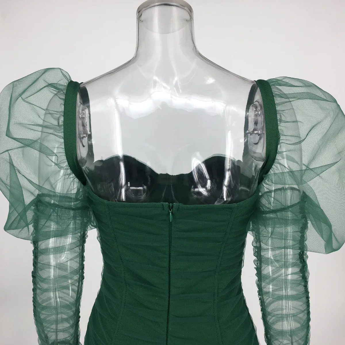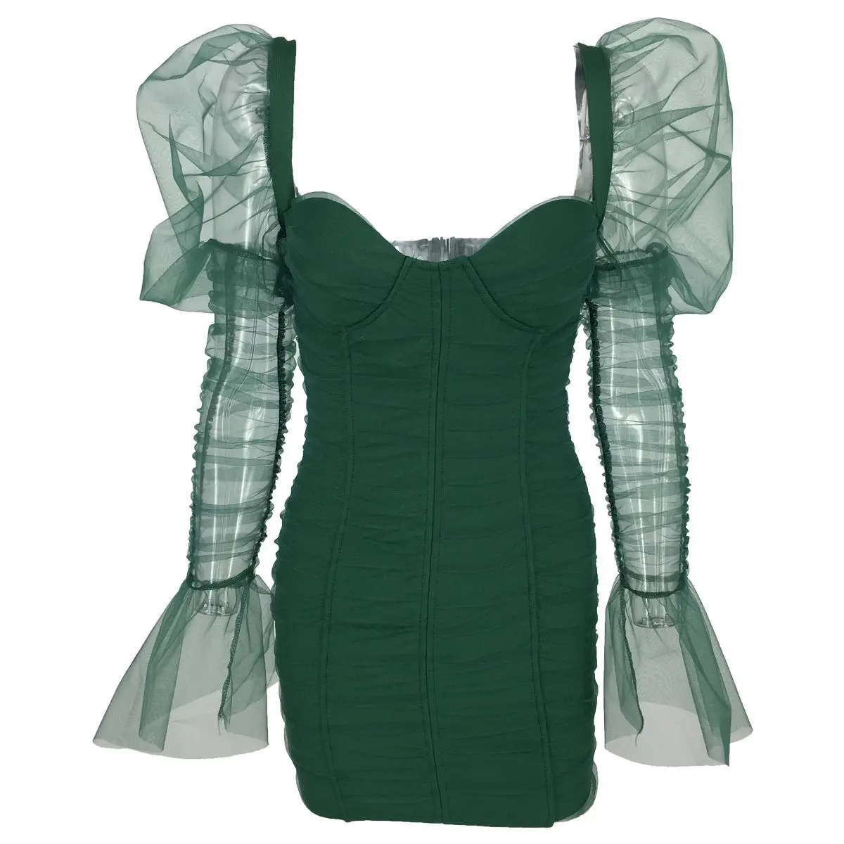 Женское кружевное платье в стиле ретро LUZUZI, зеленое сетчатое облегающее платье с длинным рукавом, вечерние платья в стиле знаменитостей, 2019