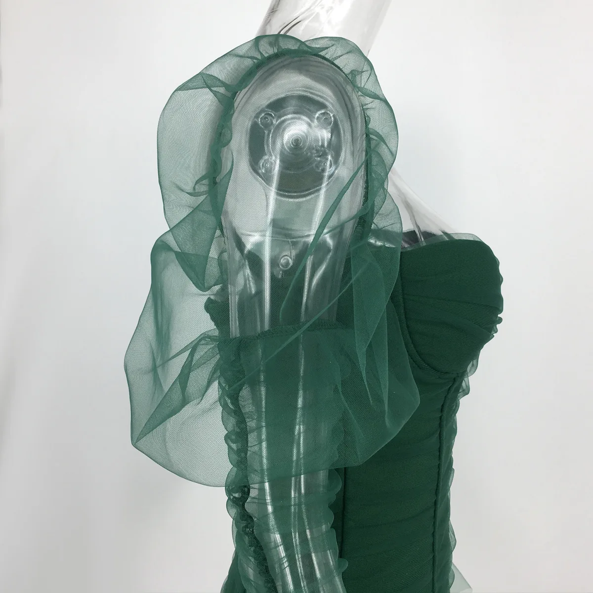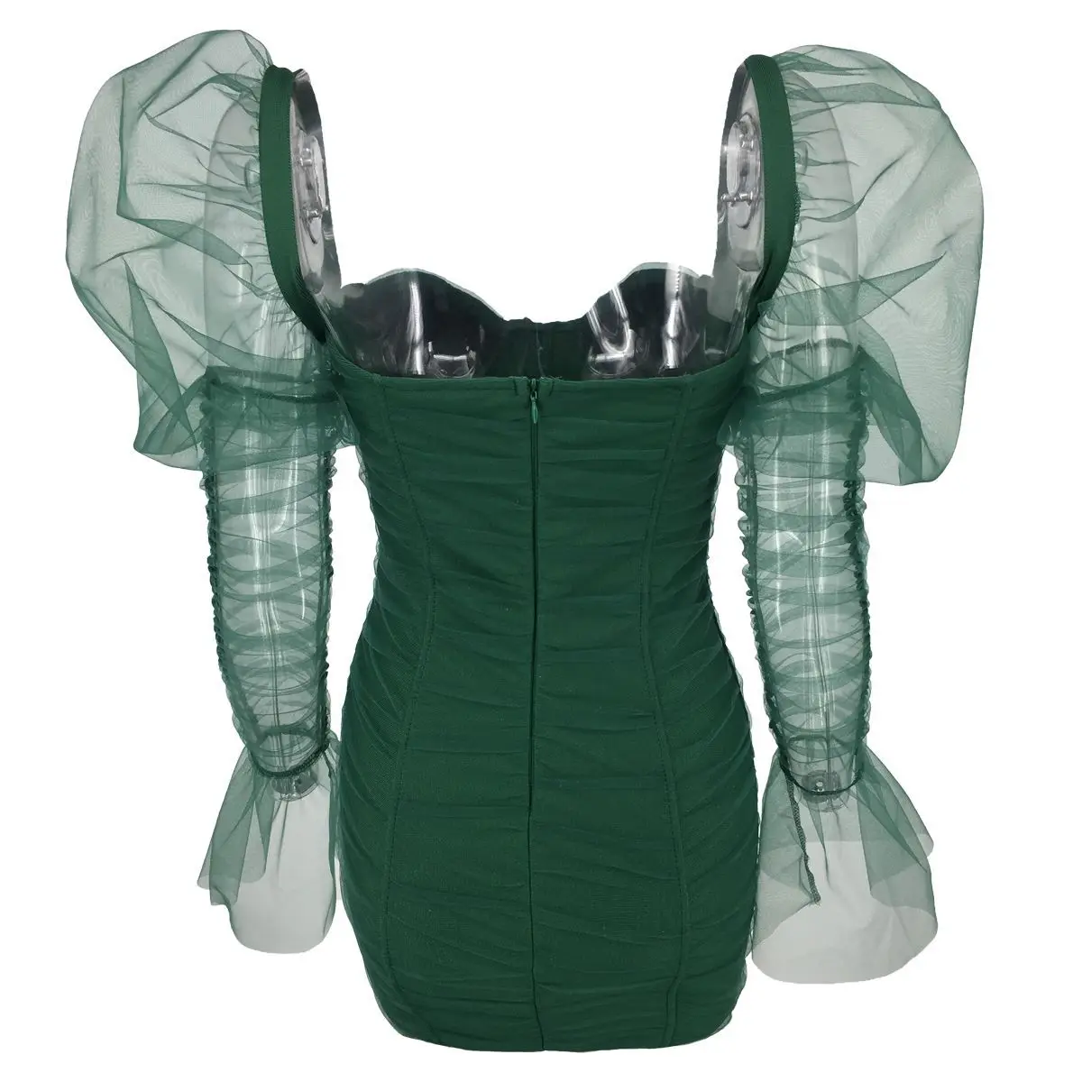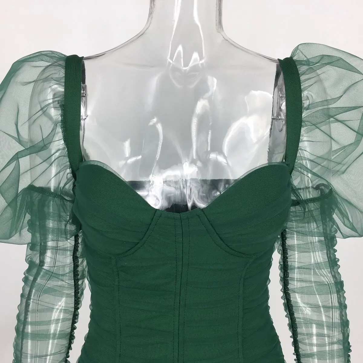 Женское кружевное платье в стиле ретро LUZUZI, зеленое сетчатое облегающее платье с длинным рукавом, вечерние платья в стиле знаменитостей, 2019