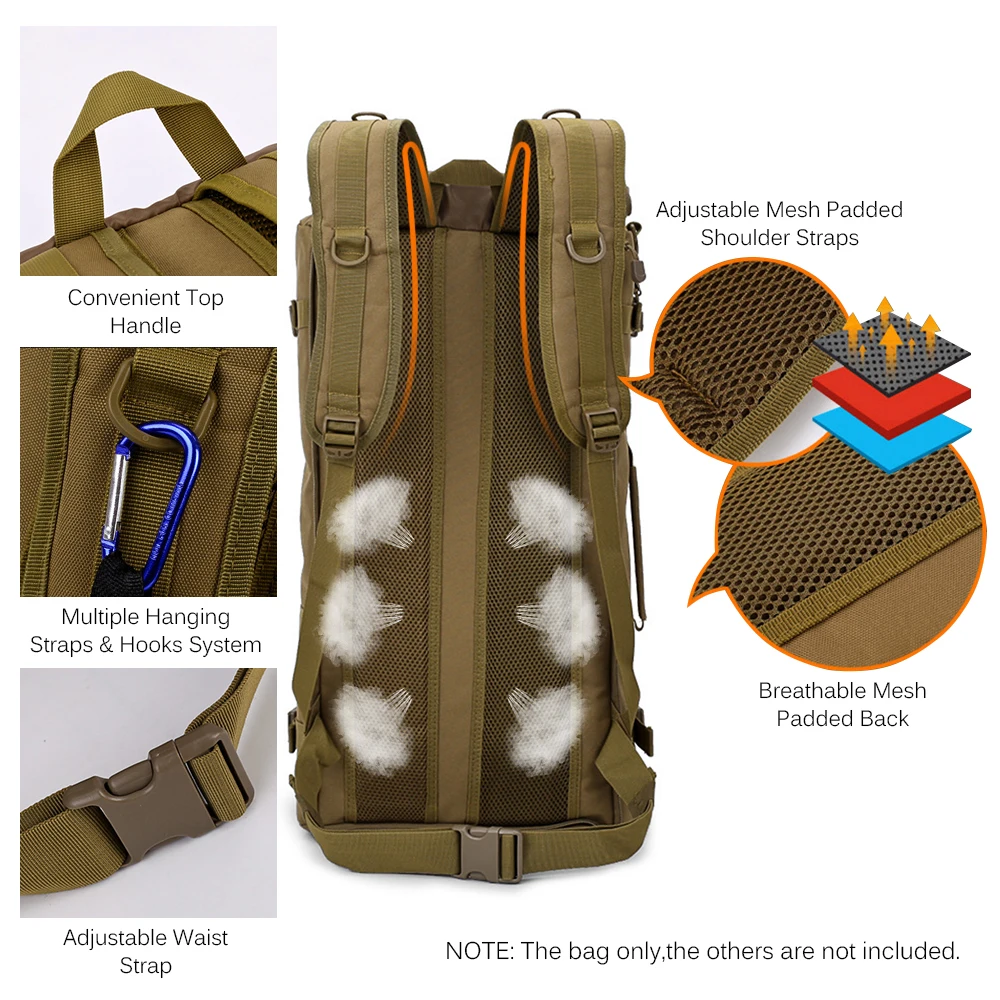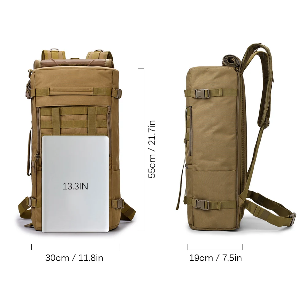 Рюкзак 50L с несколькими карманами и эргономичным дизайном, обеспечивает большую емкость для хранения, эффективно распределяет вес и обеспечивает воздухопроницаемость. Подходит для путешествий, треккинга, походов, альпинизма и других видов активного отдыха.
