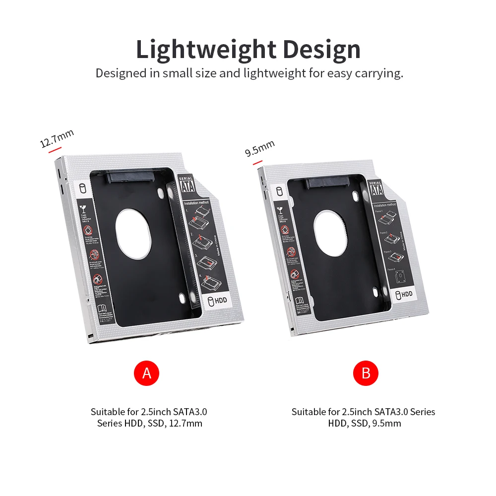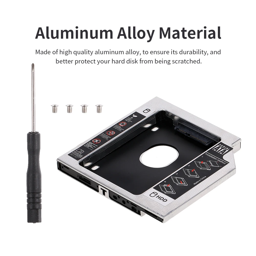 Особенности: Материал из алюминиевого сплава. Изготовлен из высококачественного алюминиевого сплава, чтобы обеспечить его долговечность и лучше защитить ваш жесткий диск от царапин. Широкая совместимость. Широко совместим с различными настольными ПК и ноутбуками, для установки без драйвера, подключи и работай, с точным отверстием для идеальной установки положения драйвера в ноутбуке. Легкий дизайн. Разработан в небольшом размере и легкий для удобной переноски. SATA 3,0. Интерфейс SATA 3,0 обеспечивает наилучшую производительность жесткого диска для более быстрого чтения и записи. Дизайн с отверстиями Полая Конструкция в нижней части обеспечивает лучшую теплоотдачу, а материал из алюминиевого сплава предотвращает электромагнитные помехи. Спецификация: Тип: HDD Caddy Толщина: 12,7 мм, 9,5 мм (опционально) Цвет: серебристый Совместимый Жесткий диск: для 2,5-дюймового SATA3.0 серии HDD, SSD, 9,5 мм, 12,7 мм Интерфейс: SATA 3,0 Размер изделия: 12,7*12,6 см/5*4,96 дюйма Вес изделия: 69 г/2,4 унции (12,7 мм), 60 г/2,1 унции (9,5 мм) Размер посылка: 19,3*16*1,5 см/7,6*6,3*0,6 дюймов Вес посылки: 105 г/3,7 унции (12,7 мм), 94 г/3,3 унции (9,5 мм) Посылка включает: 1 * HDD Caddy 1 * пакет винтов и отверток