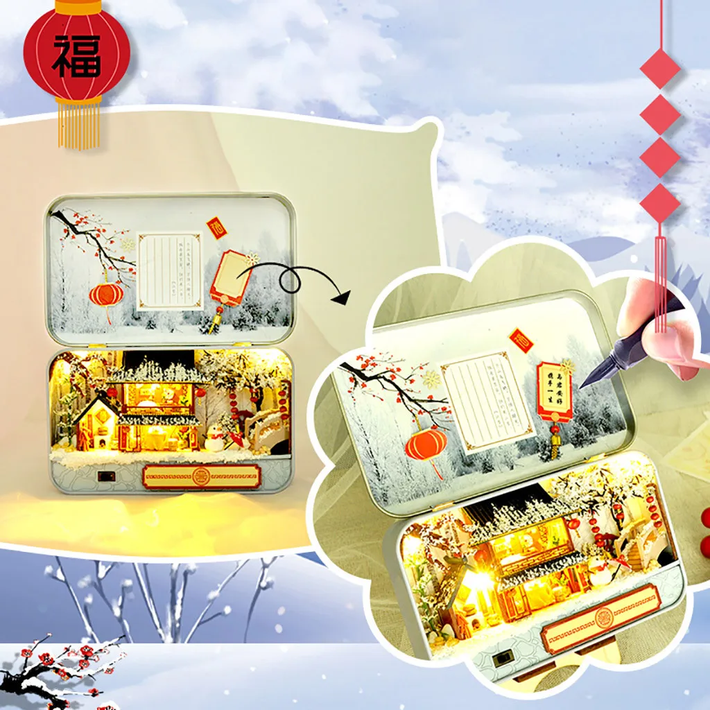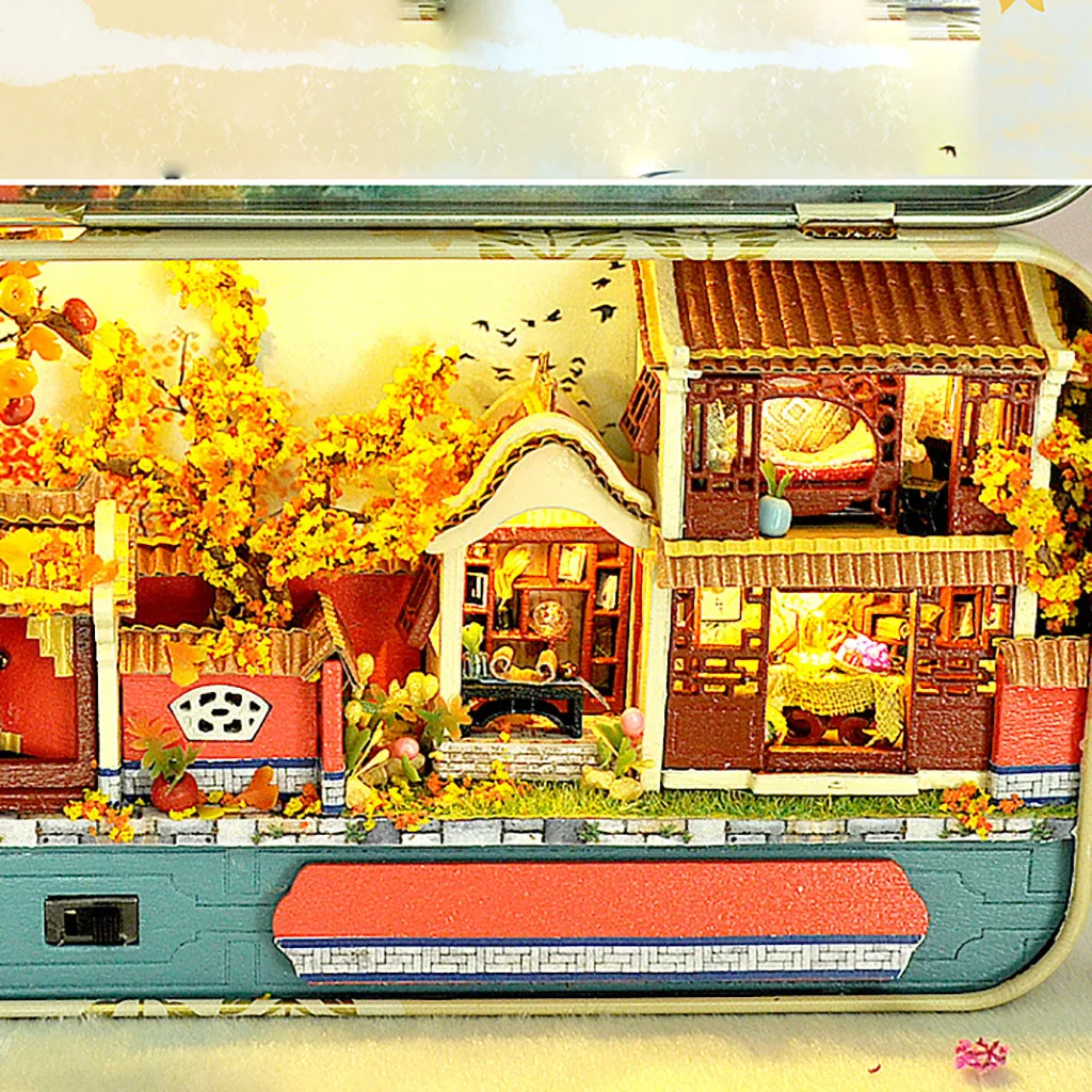 4 сезона пейзаж DIY Миниатюрный светодиодный светильник кукольный домик подарки на день Святого Валентина