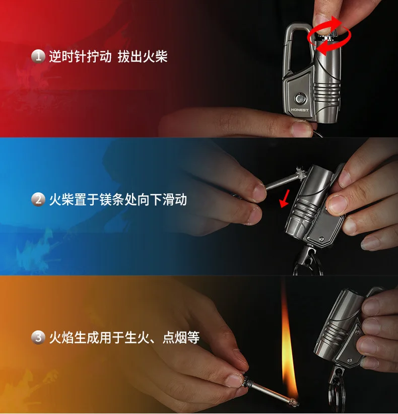 Новый металлический огненный Перманентный спички светодиодная Зажигалка водонепроницаемый кремневый пускатель керосин для кемпинга на открытом воздухе инструмент для выживания брелок