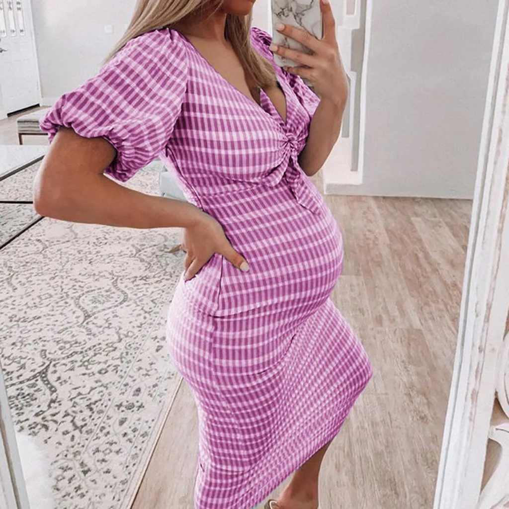 Женское платье макси в полоску с коротким рукавом и v-образным вырезом для беременных