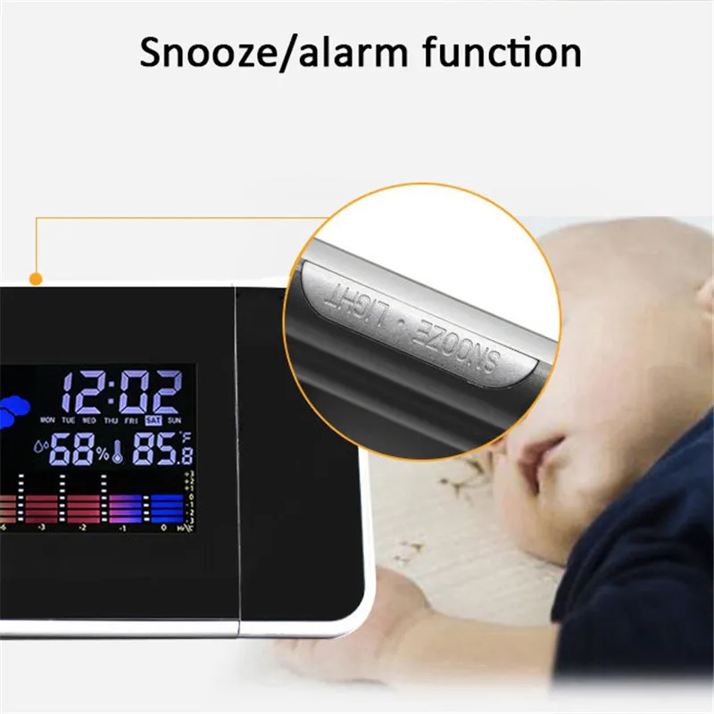 <Мощность: с выходным интерфейсом USB и встроенной кнопочной ячейкой проекционные часы могут легко заряжать ваши смартфоны, планшеты и любые другие цифровые устройства.