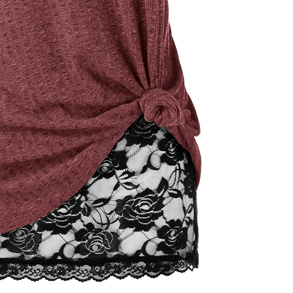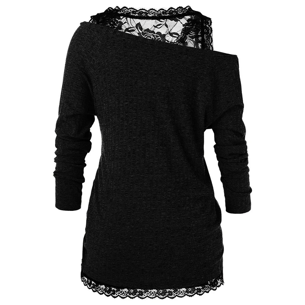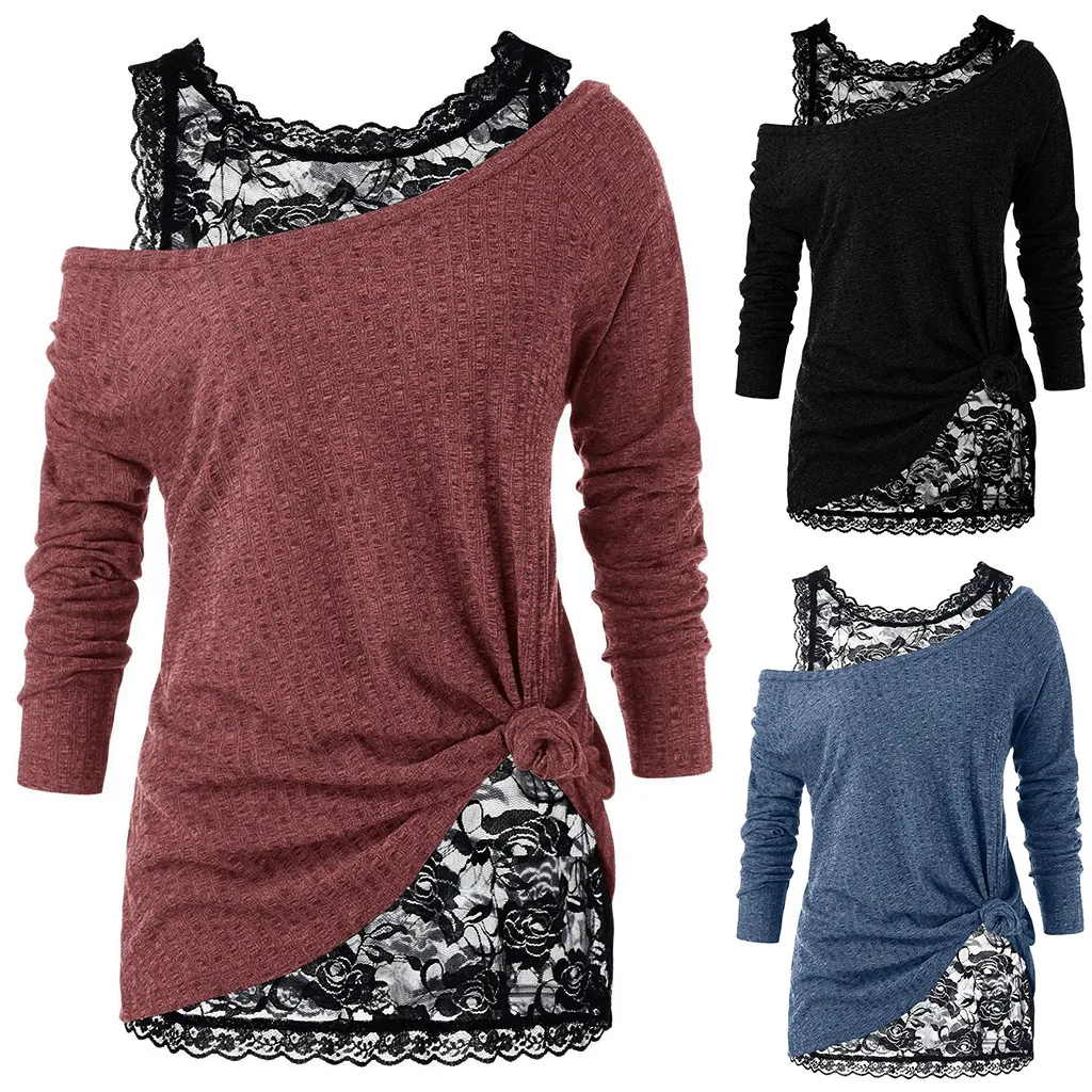 Женская блузка размера плюс с длинным рукавом и кружевом из двух частей
