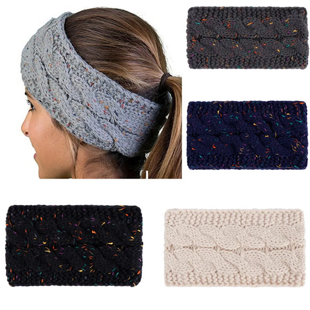 Женская вязаная повязка на голову, вязаная плотная повязка на голову, зимняя теплая чалма, закрывающая уши для женщин, вязаная крючком повязка на голову с бантом, широкая эластичная повязка на голову