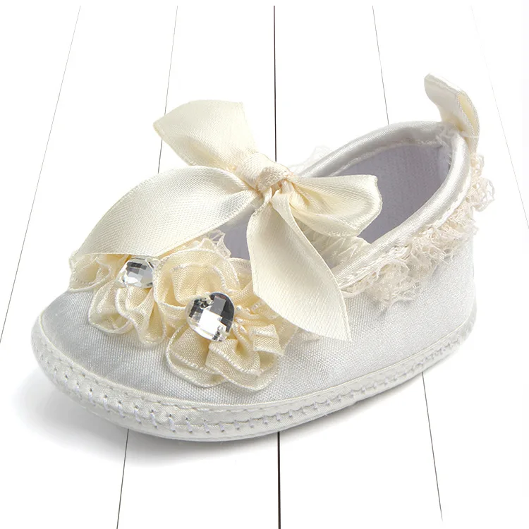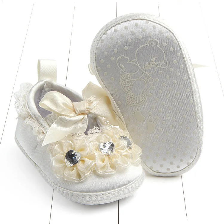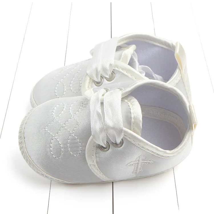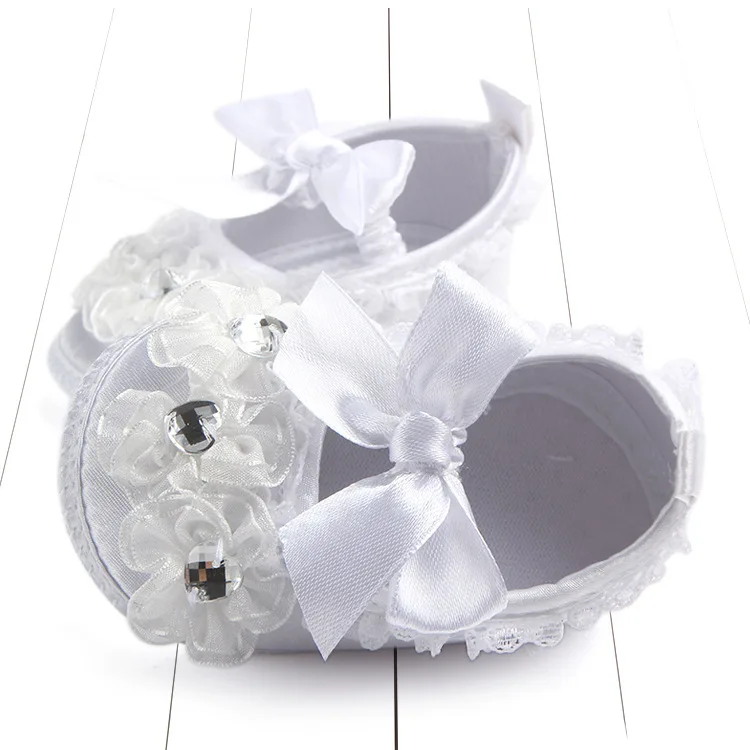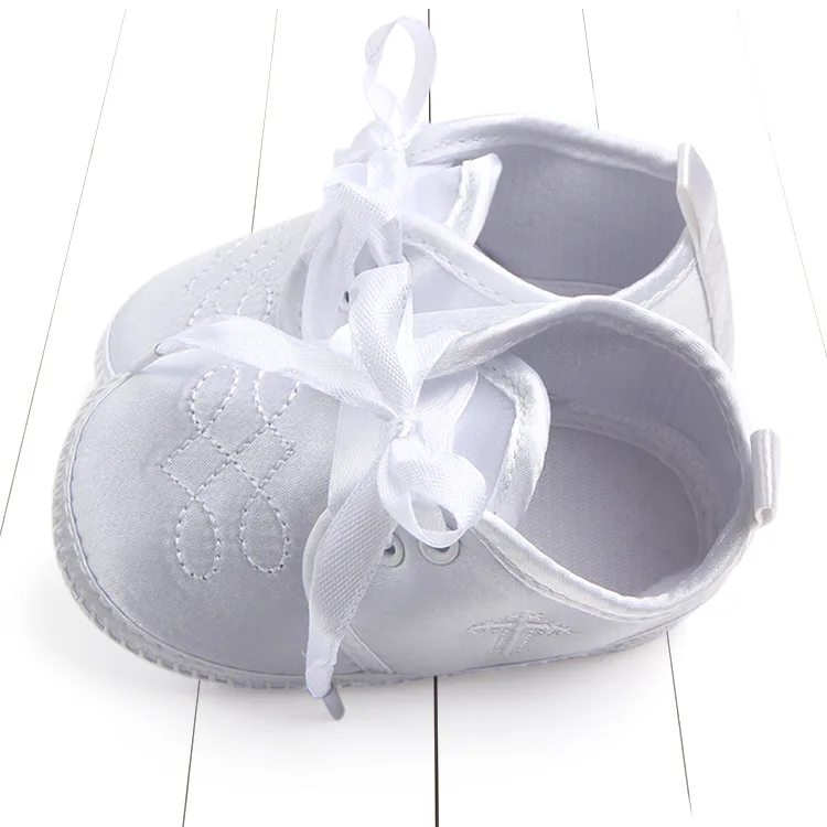 Обувь для крещения новорожденных; белая кружевная обувь с цветочным узором для маленьких девочек; нескользящая обувь для малышей; простая и Крестильная детская обувь