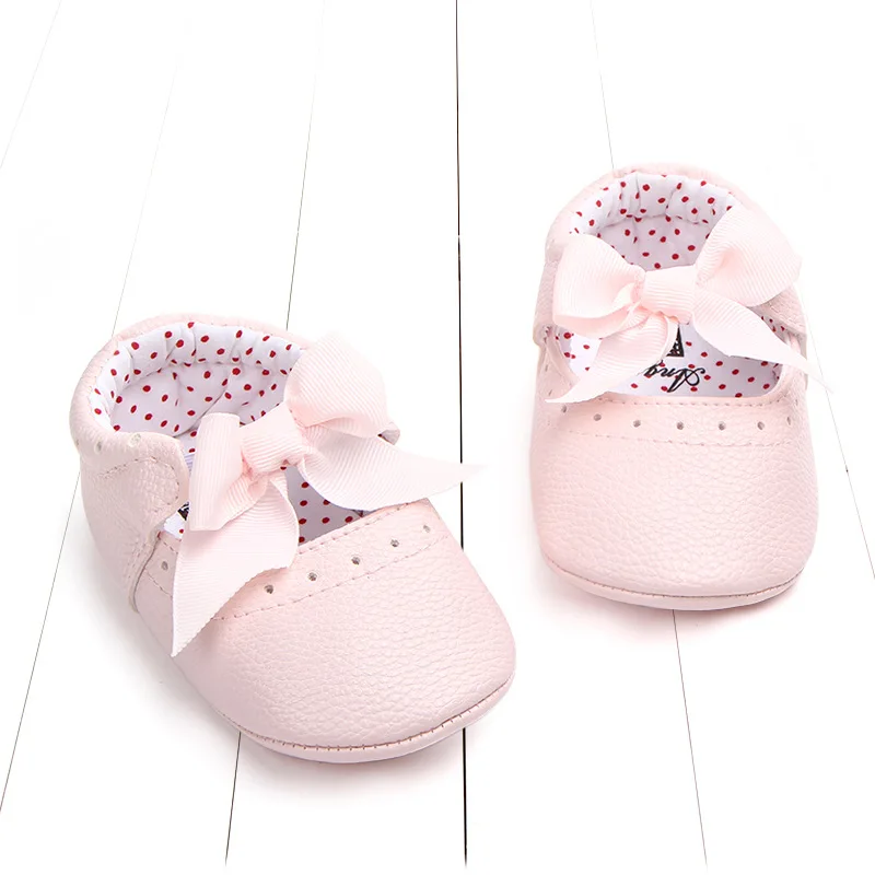 Обувь принцессы из мягкой искусственной кожи с бантиком для маленьких девочек 0-18 месяцев; обувь для новорожденных