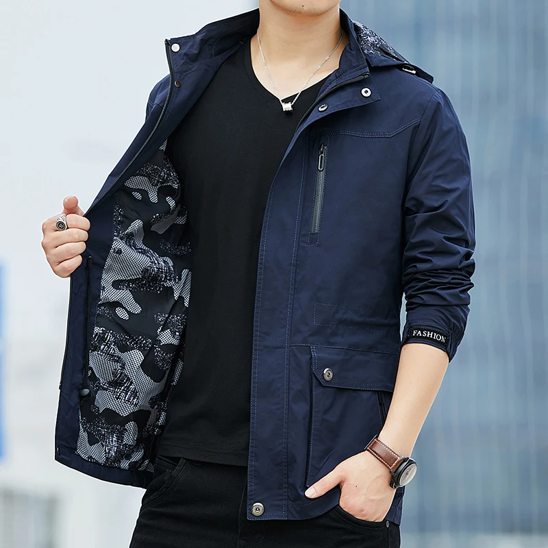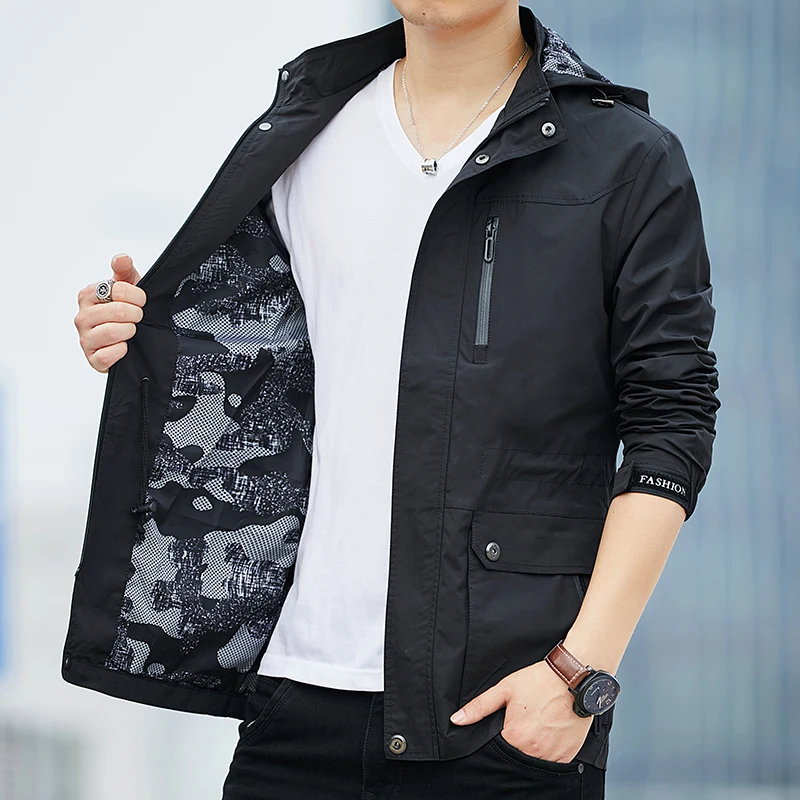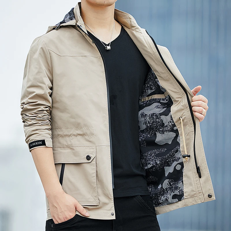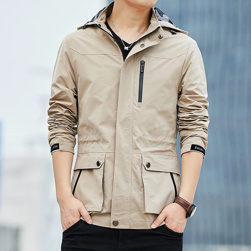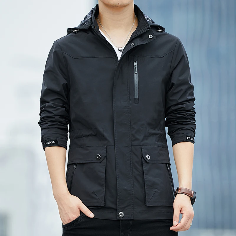 Мужская куртка-бомбер на весну и осень с несколькими карманами, военная тактическая куртка, Модная приталенная ветровка, мужская Тонкая куртка с капюшоном