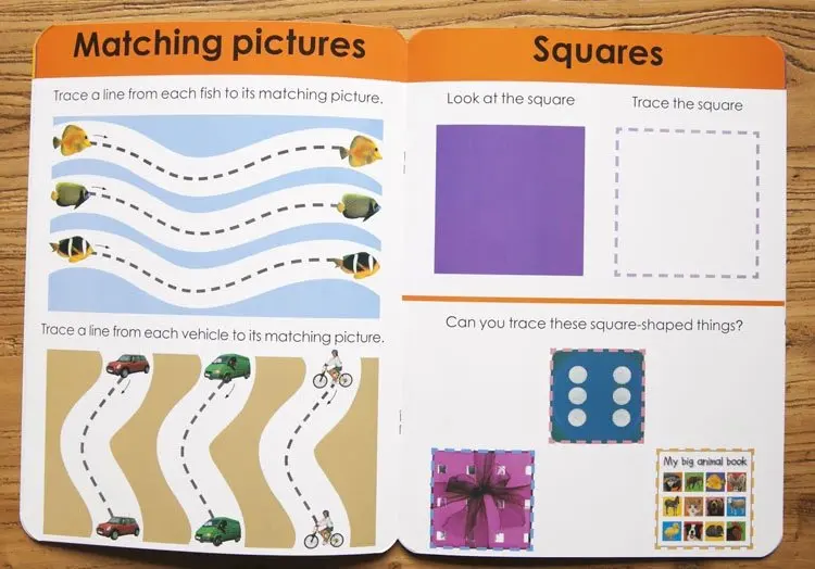 A: 10 книг/комплект, размер: 21*28,5 см, каждая книга с 14 страниц. B: 4 книги/набор, Размер: 21,6*27,6 см каждая книга с 32 страницами.