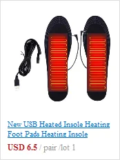 USB стельки с перезаряжаемым подогревом:Эти нагревательные стельки сделаны из новой технологии нагрева, расширяемый Материал EVA часто и удобен, с хорошей амортизацией, портативный светильник, нагрев удобно с USB интерфейсом, используется для нагрева через USB-кабель, большая площадь нагрева, равномерное распределения тепла, температура достигает 50 ° C / 122 ° c.