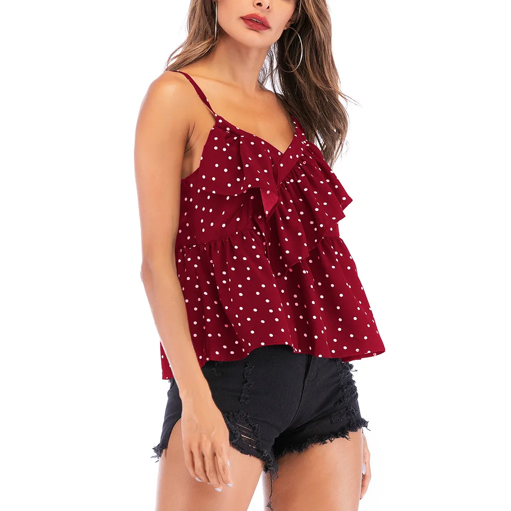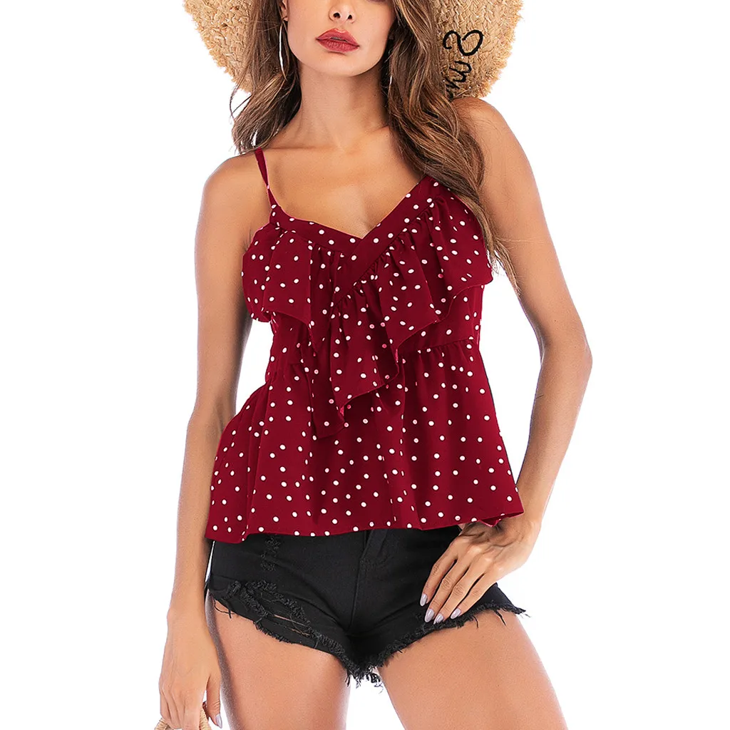 3. С v-образной горловинойПлатье без рукавов, обычныйДлина, регулируемые бретельки, узор в горошек, оборки, открытая спина. Милый и милый, очаровательный и привлекательный. Простой, но модный.Покажите свои изгибы с шармом.