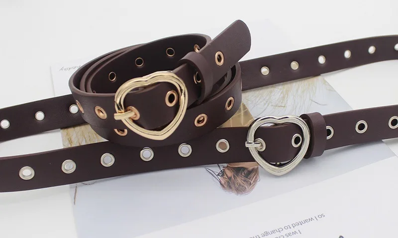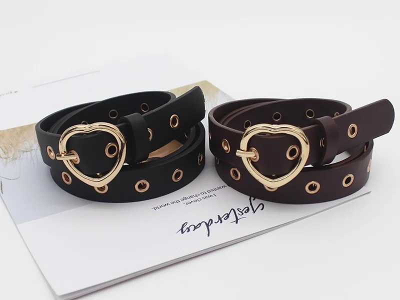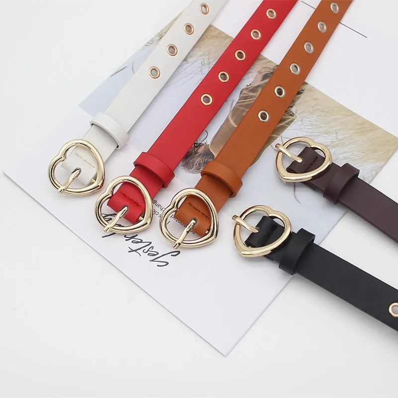 Женские ремни кожаный пояс для одежды аксессуары в форме сердца Пряжка Тонкий Повседневный ремень для женщин
